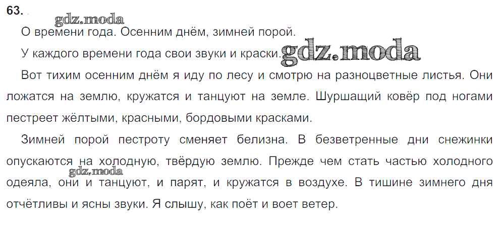 ОТВЕТ на задание № 63 Учебник по Русскому языку 4 класс Бунеев Школа 2100