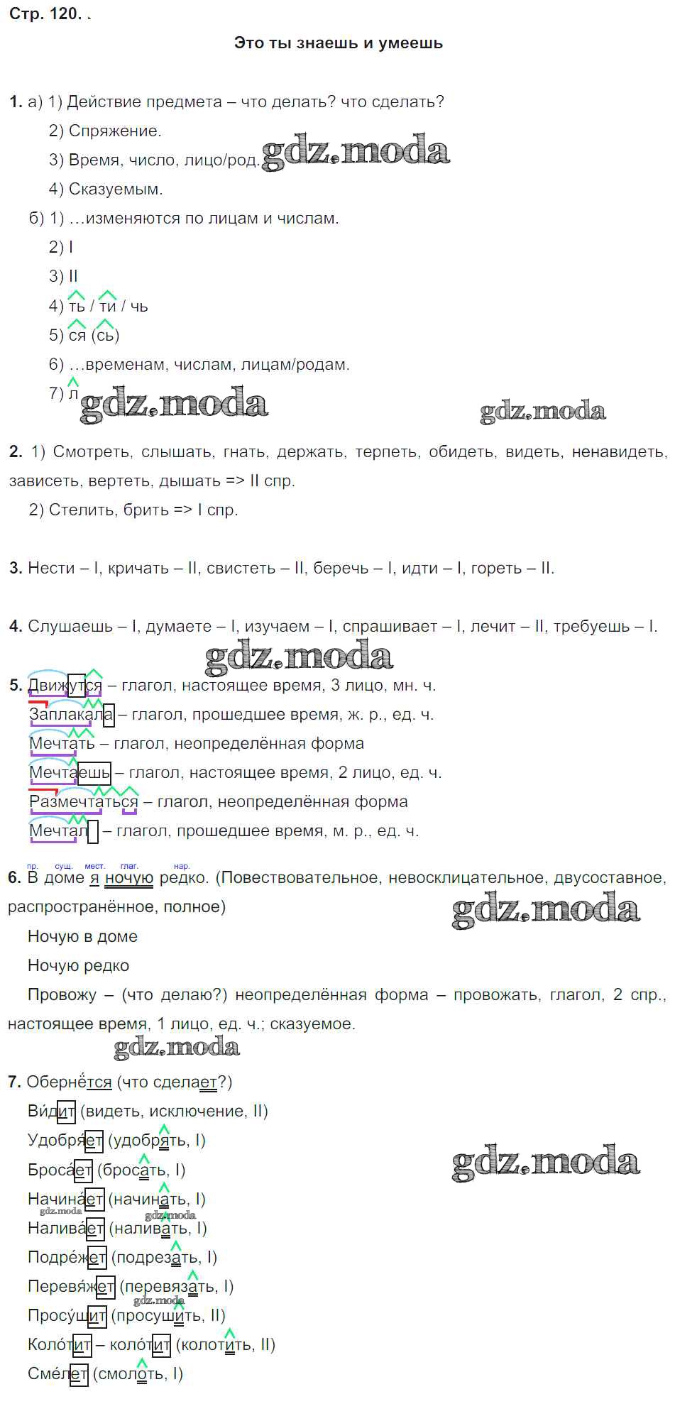 ОТВЕТ на задание № 120 Учебник по Русскому языку 4 класс Бунеев Школа 2100