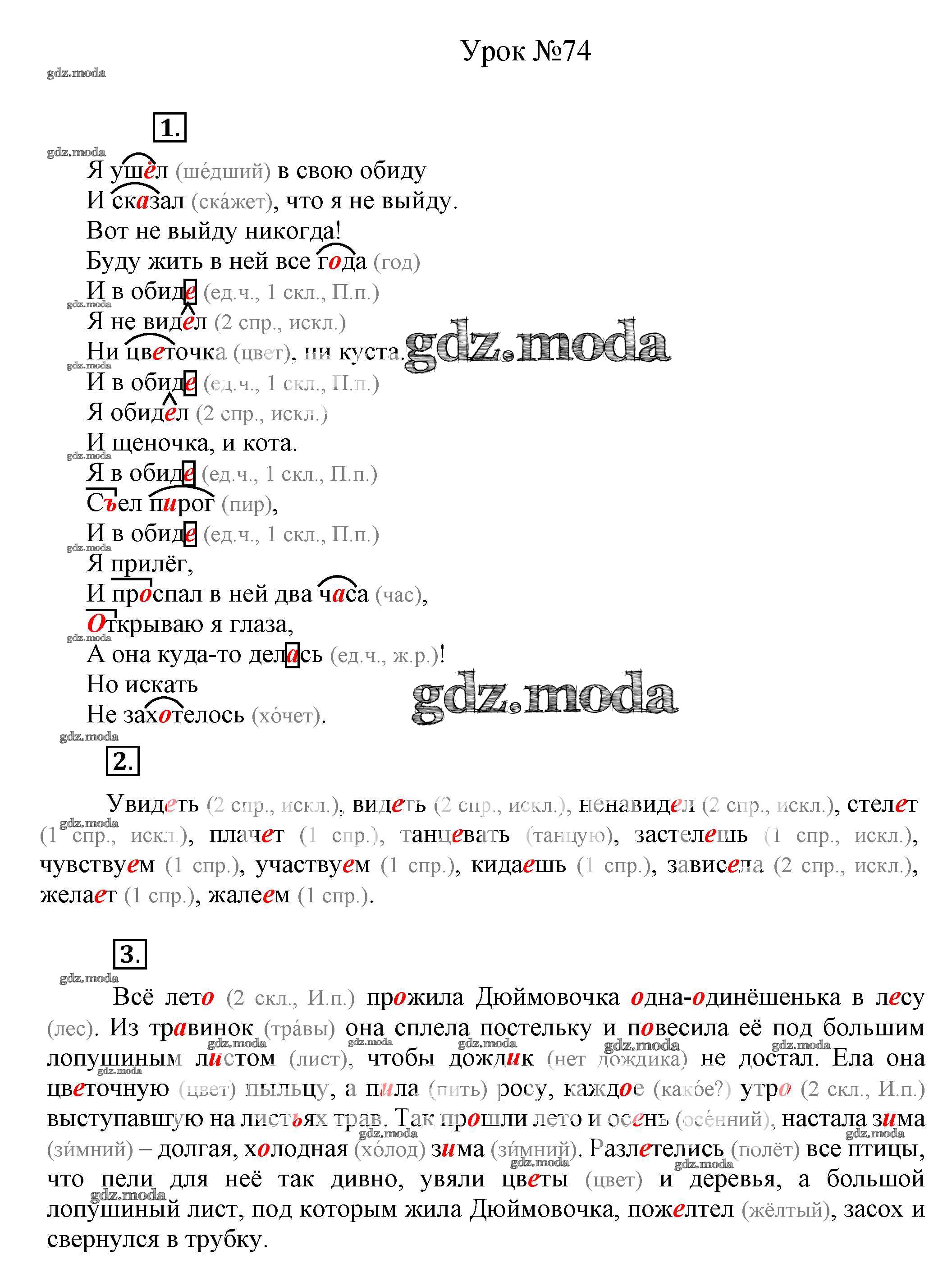 ГДЗ решение к заданию № 74 Русский язык 4 класс Иванов С.В. Вентана-граф 2013 Часть 1, Часть 2 ФГОС бесплатно на гдз.мода!