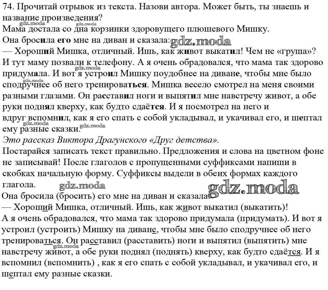 ОТВЕТ на задание № 74 Учебник по Русскому языку 4 класс Каленчук Перспективная начальная школа