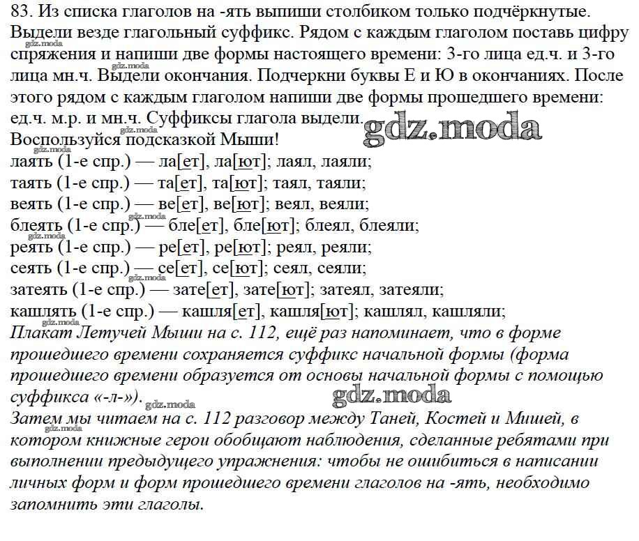 ОТВЕТ на задание № 83 Учебник по Русскому языку 4 класс Каленчук Перспективная начальная школа
