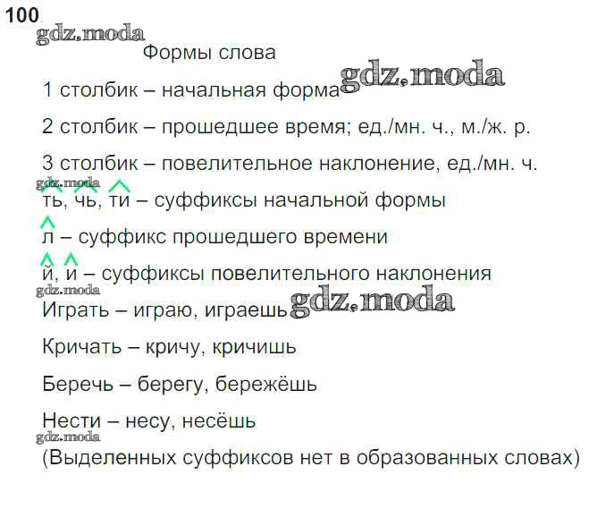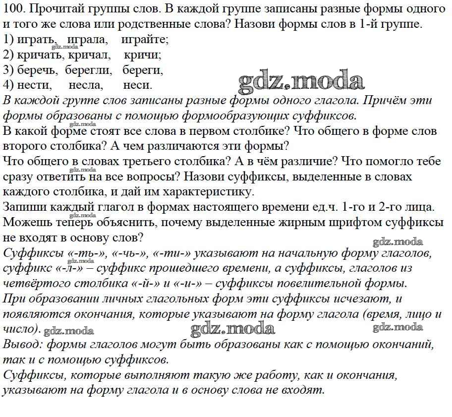 ОТВЕТ на задание № 100 Учебник по Русскому языку 4 класс Каленчук Перспективная начальная школа
