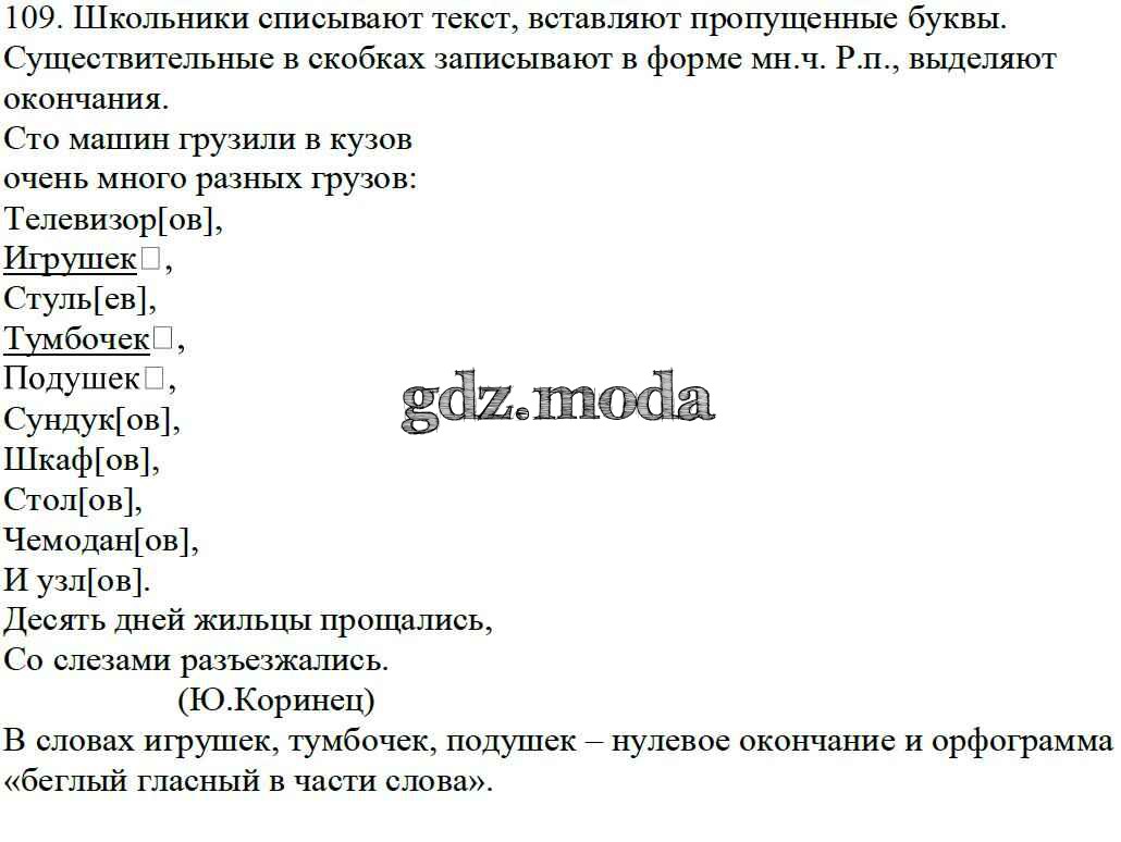 ОТВЕТ на задание № 109 Учебник по Русскому языку 4 класс Каленчук Перспективная начальная школа