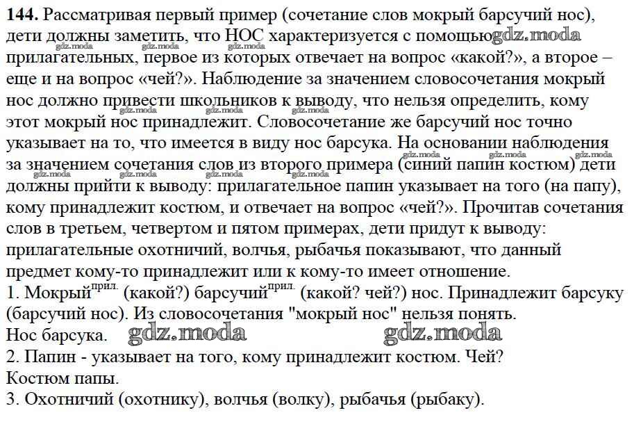 ОТВЕТ на задание № 144 Учебник по Русскому языку 4 класс Каленчук Перспективная начальная школа