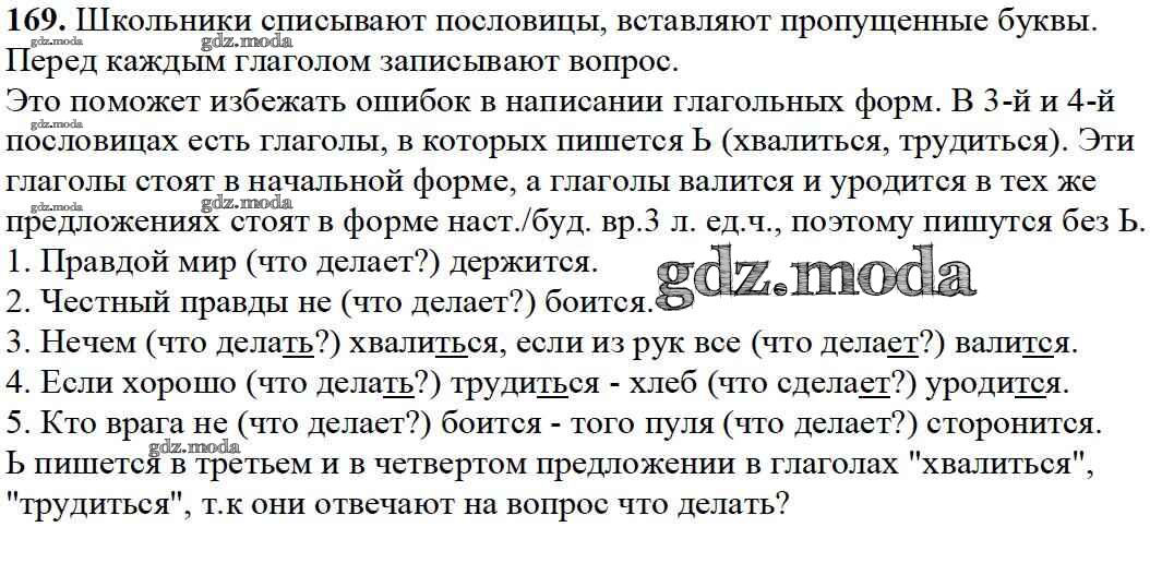 ОТВЕТ на задание № 169 Учебник по Русскому языку 4 класс Каленчук Перспективная начальная школа