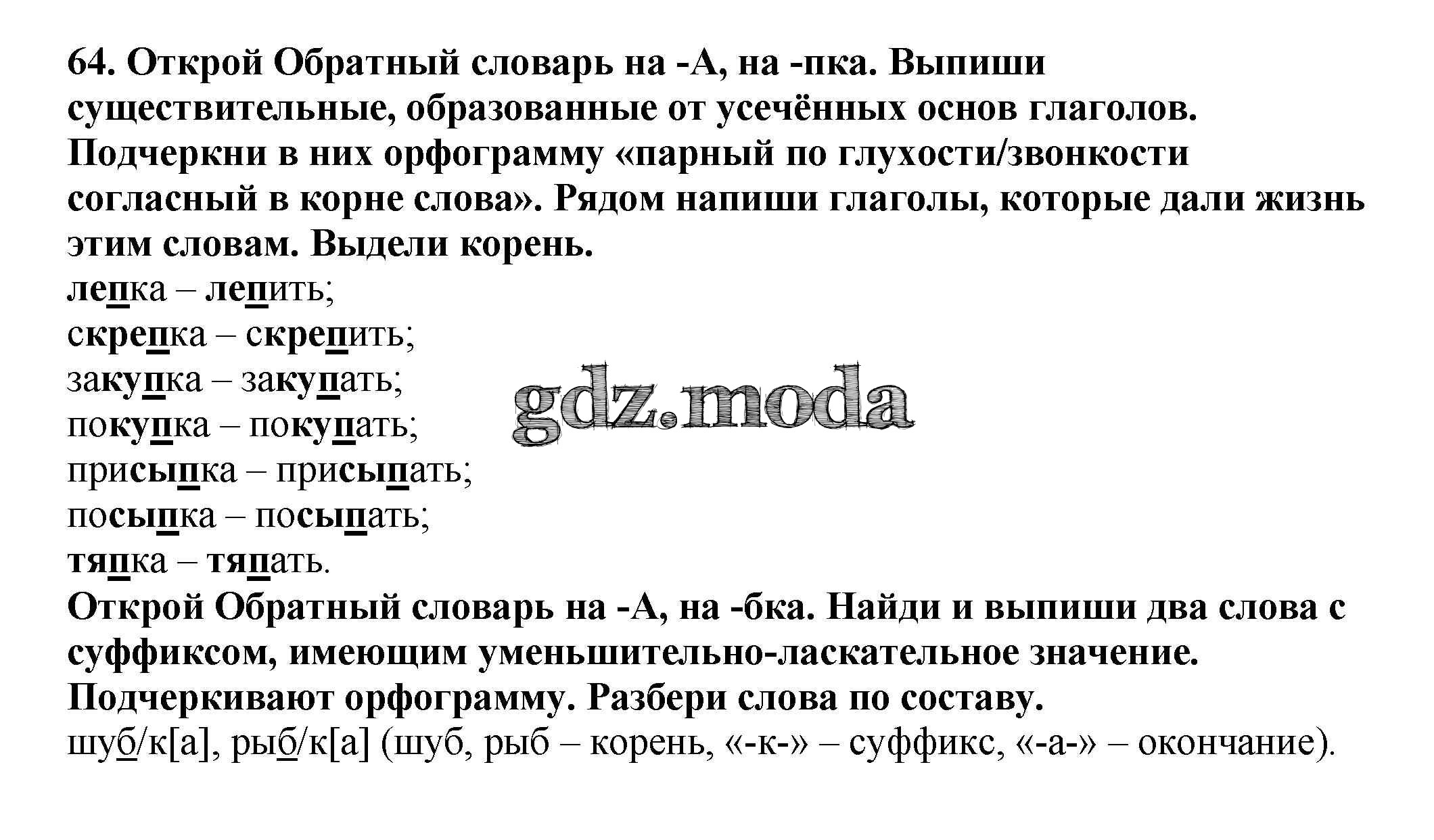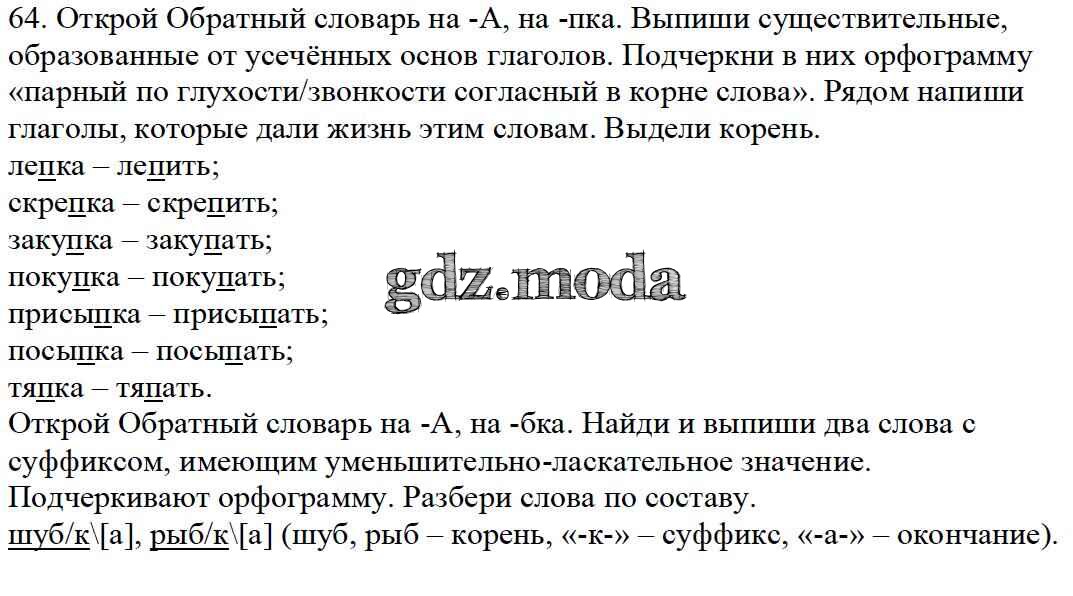 ОТВЕТ на задание № 64 Учебник по Русскому языку 4 класс Каленчук Перспективная начальная школа