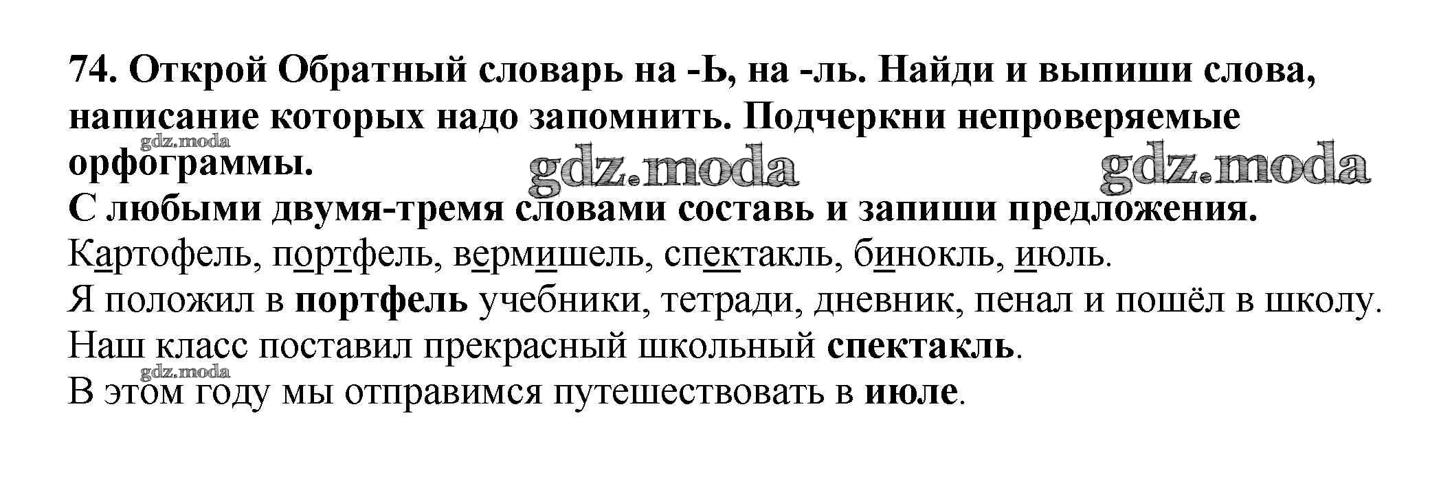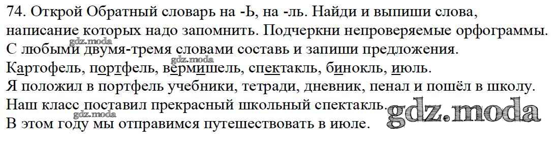 ОТВЕТ на задание № 74 Учебник по Русскому языку 4 класс Каленчук Перспективная начальная школа