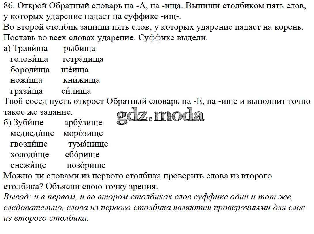 ОТВЕТ на задание № 86 Учебник по Русскому языку 4 класс Каленчук Перспективная начальная школа