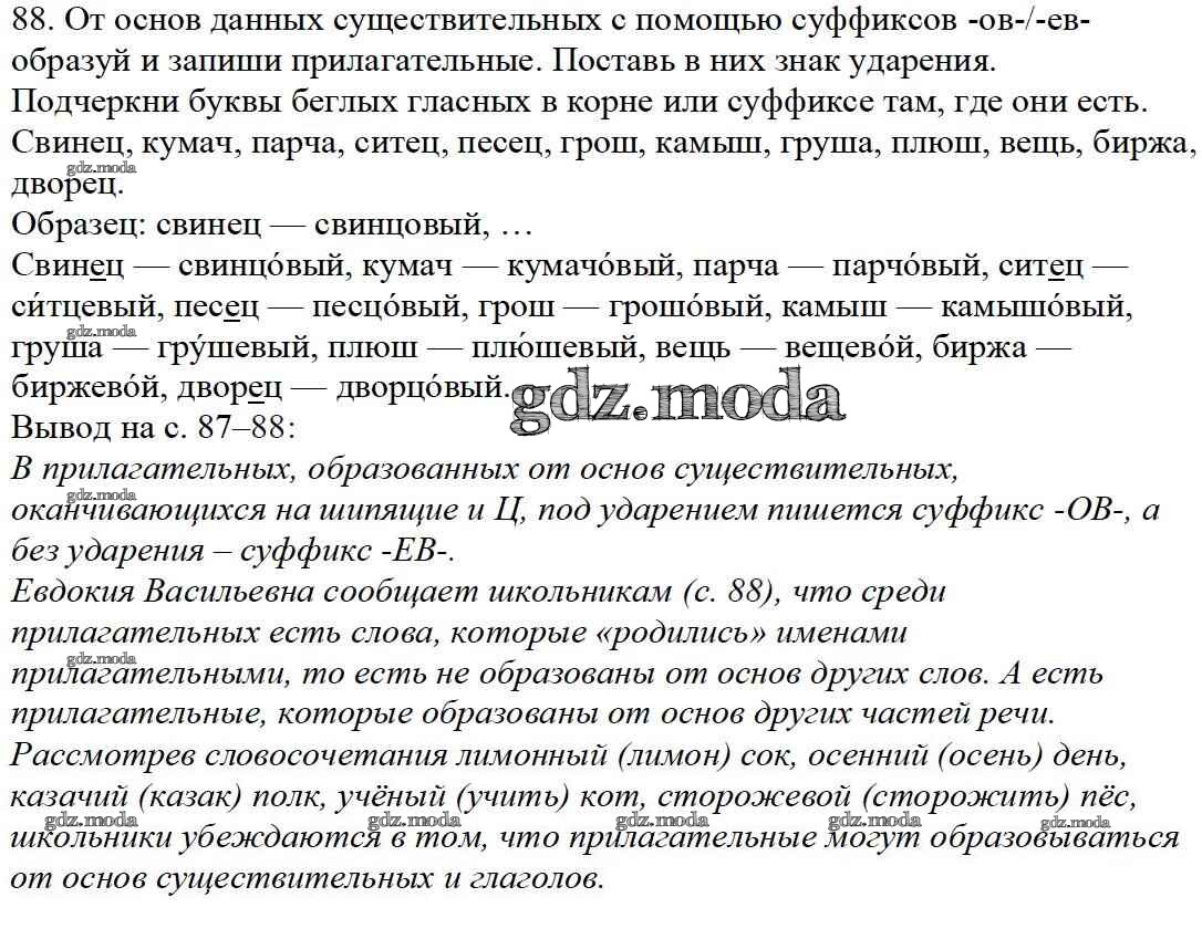 ОТВЕТ на задание № 88 Учебник по Русскому языку 4 класс Каленчук Перспективная начальная школа