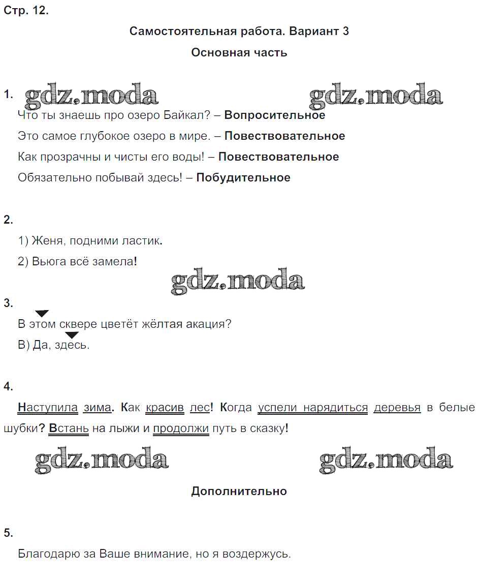 ГДЗ решение к заданию № 12 Русский язык 4 класс Тесты и самостоятельные работы для текущего контроля Калинина О.Б. (к уч. Желтовской) Дрофа 2017 ФГОС бесплатно на гдз.мода!