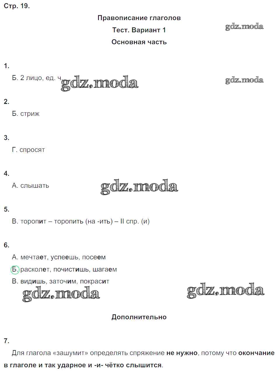 ГДЗ решение к заданию № 19 Русский язык 4 класс Тесты и самостоятельные работы для текущего контроля Калинина О.Б. (к уч. Желтовской) Дрофа 2017 ФГОС бесплатно на гдз.мода!