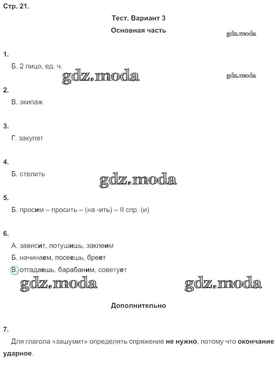 ГДЗ решение к заданию № 21 Русский язык 4 класс Тесты и самостоятельные работы для текущего контроля Калинина О.Б. (к уч. Желтовской) Дрофа 2017 ФГОС бесплатно на гдз.мода!