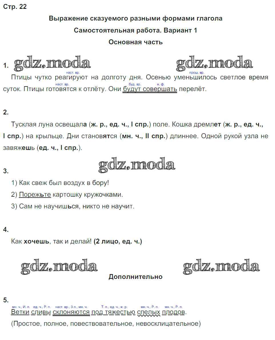 ГДЗ решение к заданию № 22 Русский язык 4 класс Тесты и самостоятельные работы для текущего контроля Калинина О.Б. (к уч. Желтовской) Дрофа 2017 ФГОС бесплатно на гдз.мода!
