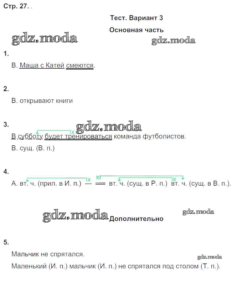 ГДЗ решение к заданию № 27 Русский язык 4 класс Тесты и самостоятельные работы для текущего контроля Калинина О.Б. (к уч. Желтовской) Дрофа 2017 ФГОС бесплатно на гдз.мода!