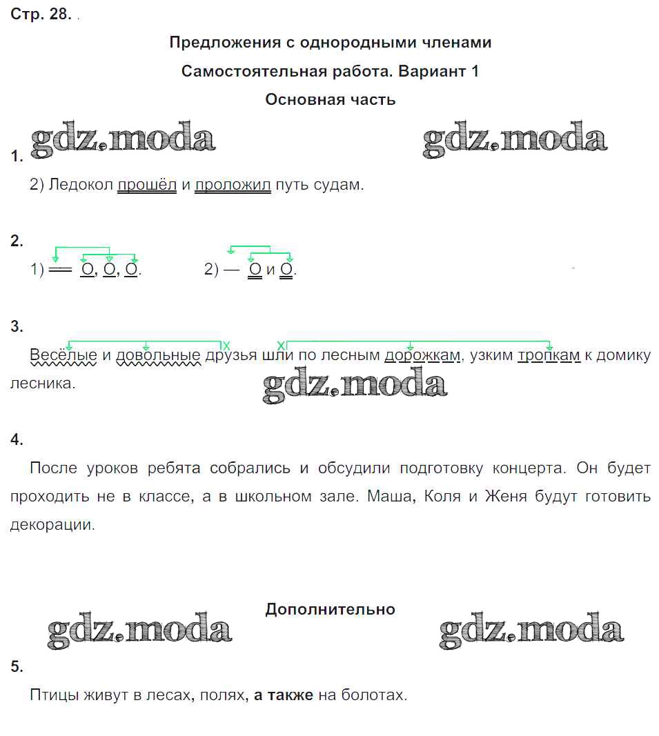 ГДЗ решение к заданию № 28 Русский язык 4 класс Тесты и самостоятельные работы для текущего контроля Калинина О.Б. (к уч. Желтовской) Дрофа 2017 ФГОС бесплатно на гдз.мода!