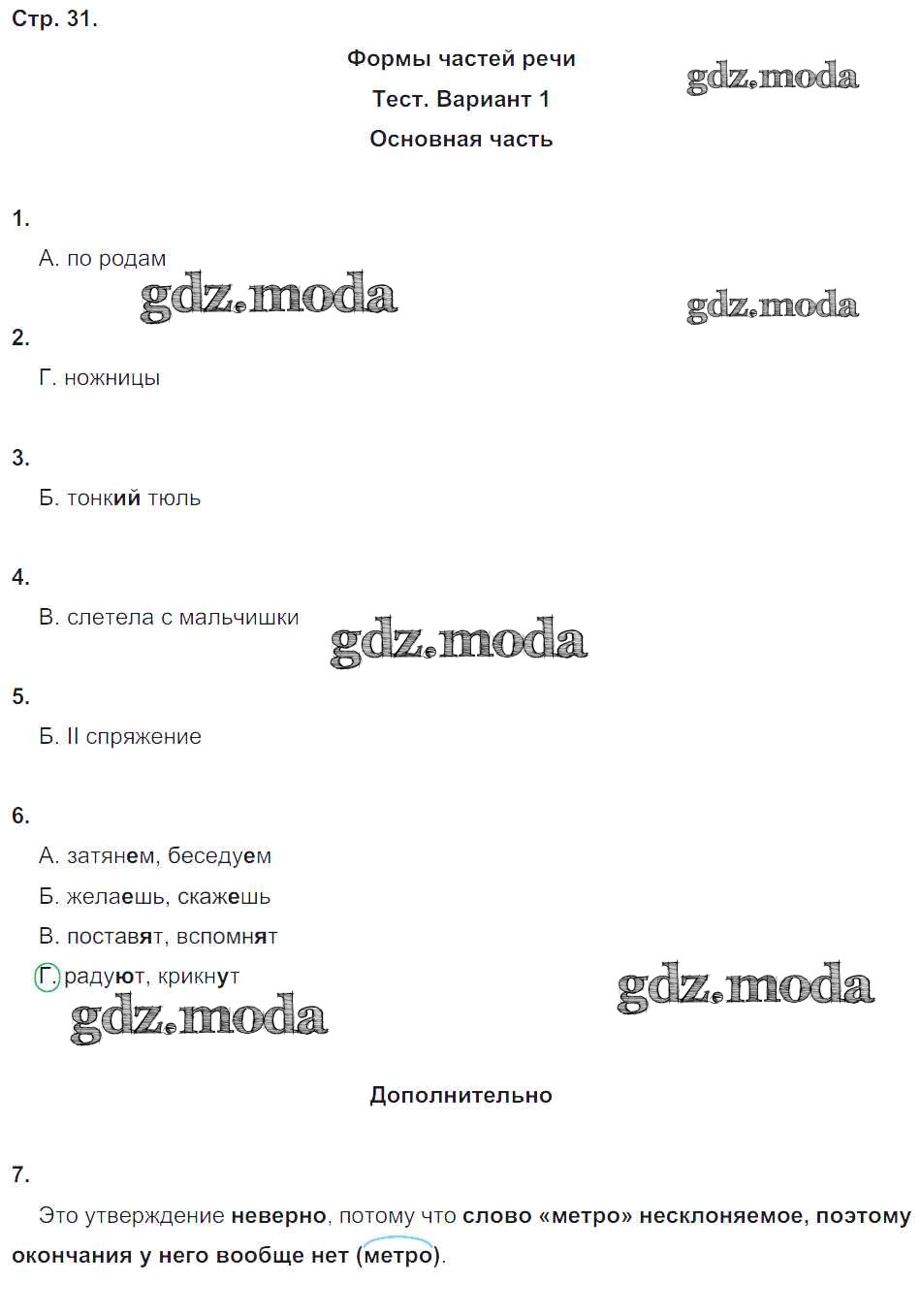 ГДЗ решение к заданию № 31 Русский язык 4 класс Тесты и самостоятельные работы для текущего контроля Калинина О.Б. (к уч. Желтовской) Дрофа 2017 ФГОС бесплатно на гдз.мода!