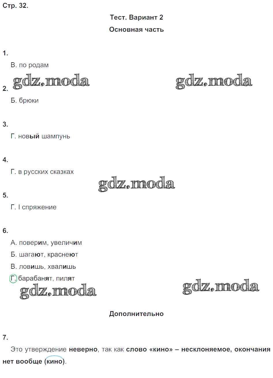 ГДЗ решение к заданию № 32 Русский язык 4 класс Тесты и самостоятельные работы для текущего контроля Калинина О.Б. (к уч. Желтовской) Дрофа 2017 ФГОС бесплатно на гдз.мода!