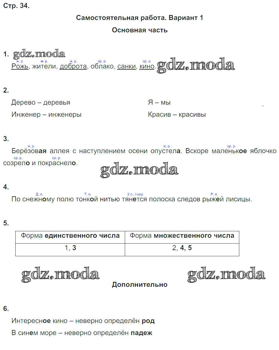 ГДЗ решение к заданию № 34 Русский язык 4 класс Тесты и самостоятельные работы для текущего контроля Калинина О.Б. (к уч. Желтовской) Дрофа 2017 ФГОС бесплатно на гдз.мода!