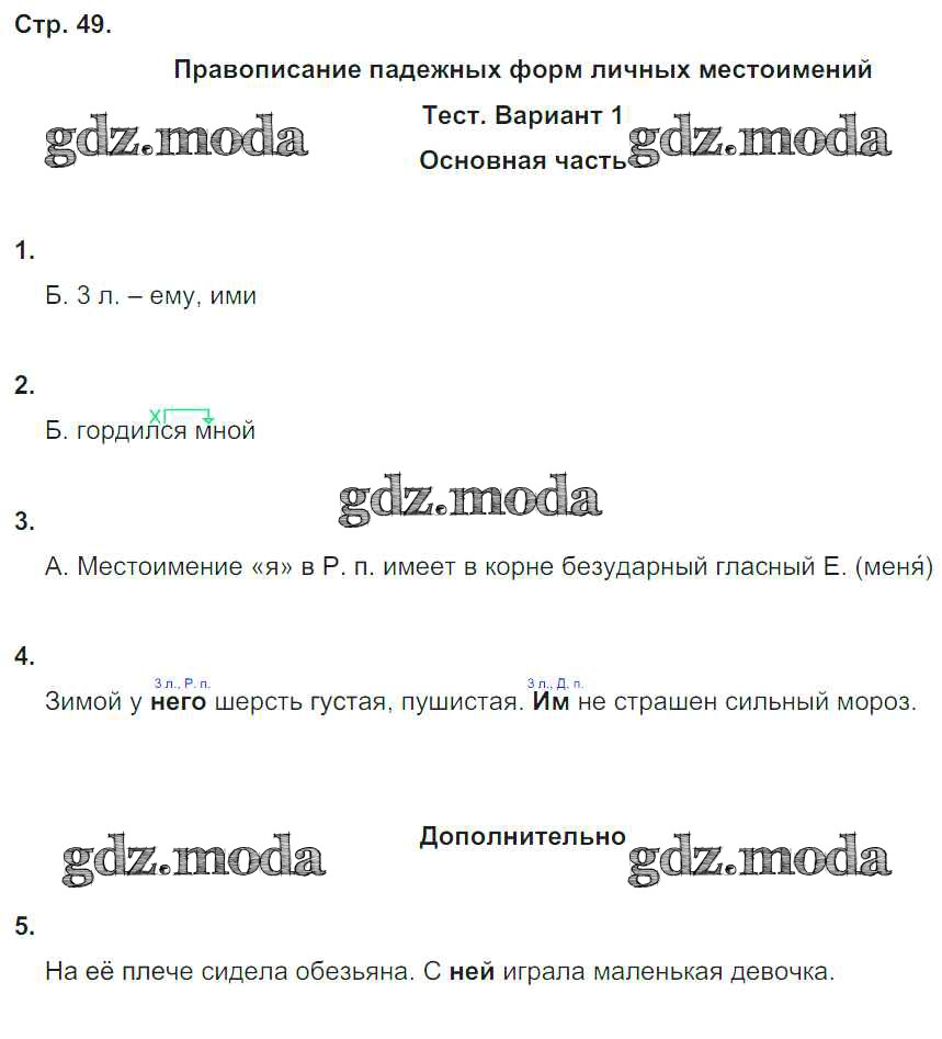 ГДЗ решение к заданию № 49 Русский язык 4 класс Тесты и самостоятельные работы для текущего контроля Калинина О.Б. (к уч. Желтовской) Дрофа 2017 ФГОС бесплатно на гдз.мода!