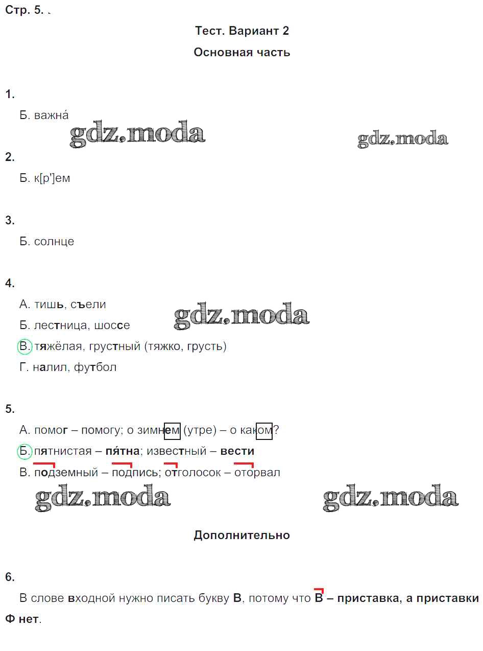 ГДЗ решение к заданию № 5 Русский язык 4 класс Тесты и самостоятельные работы для текущего контроля Калинина О.Б. (к уч. Желтовской) Дрофа 2017 ФГОС бесплатно на гдз.мода!