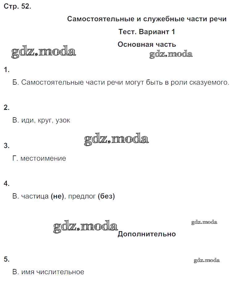 ГДЗ решение к заданию № 52 Русский язык 4 класс Тесты и самостоятельные работы для текущего контроля Калинина О.Б. (к уч. Желтовской) Дрофа 2017 ФГОС бесплатно на гдз.мода!