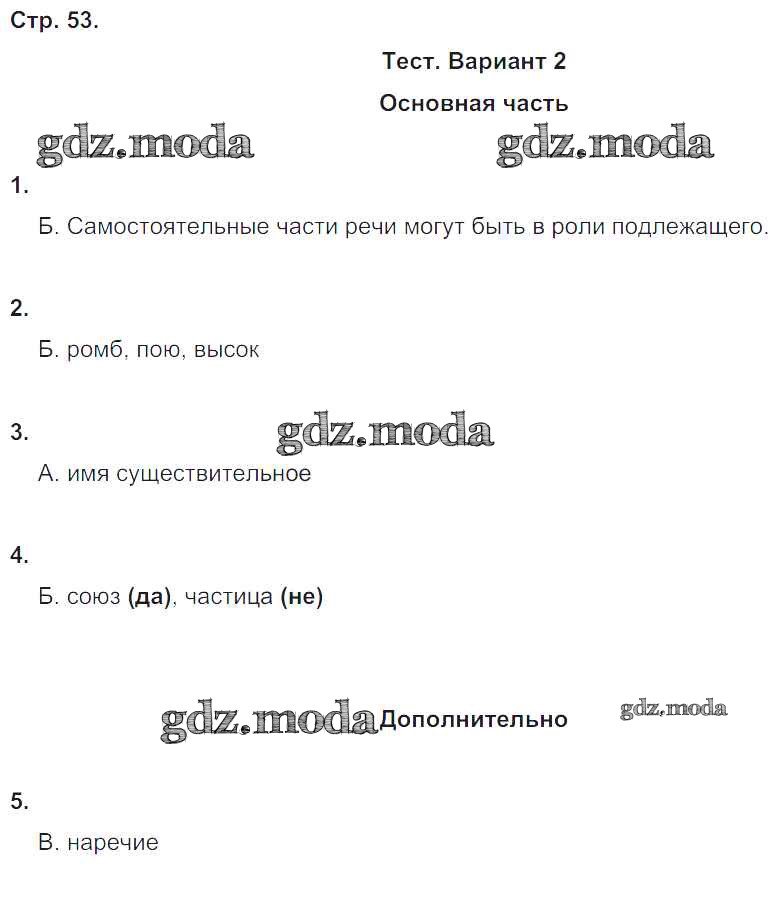 ГДЗ решение к заданию № 53 Русский язык 4 класс Тесты и самостоятельные работы для текущего контроля Калинина О.Б. (к уч. Желтовской) Дрофа 2017 ФГОС бесплатно на гдз.мода!