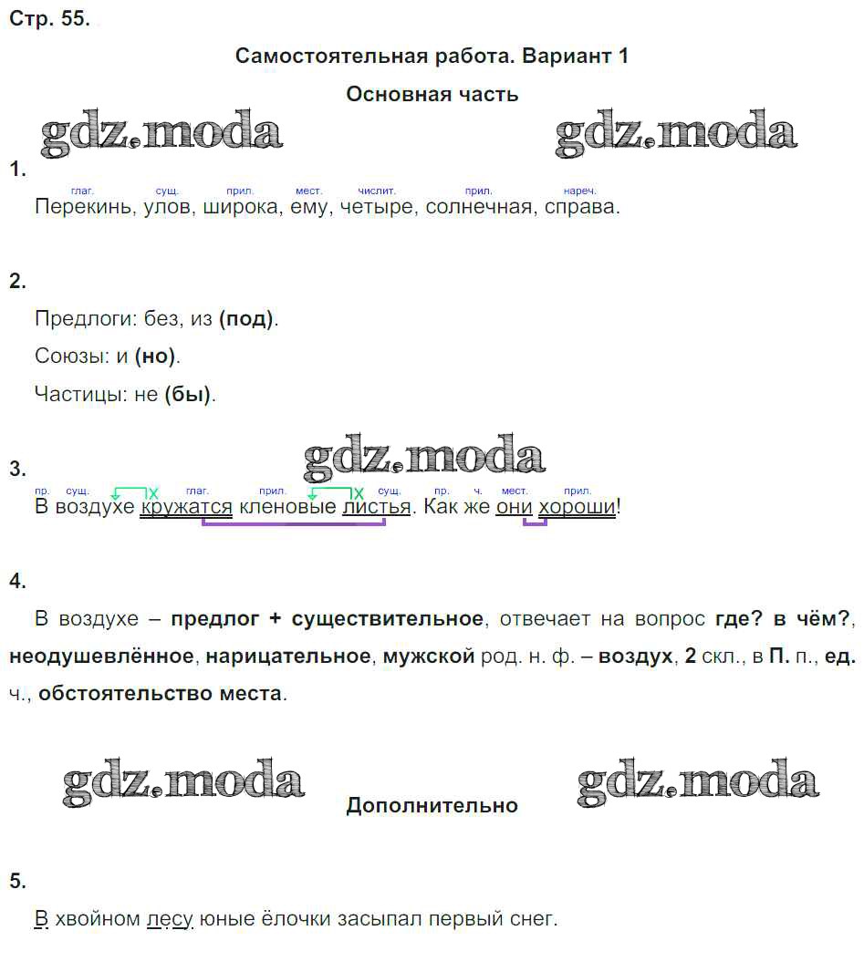 ГДЗ решение к заданию № 55 Русский язык 4 класс Тесты и самостоятельные работы для текущего контроля Калинина О.Б. (к уч. Желтовской) Дрофа 2017 ФГОС бесплатно на гдз.мода!