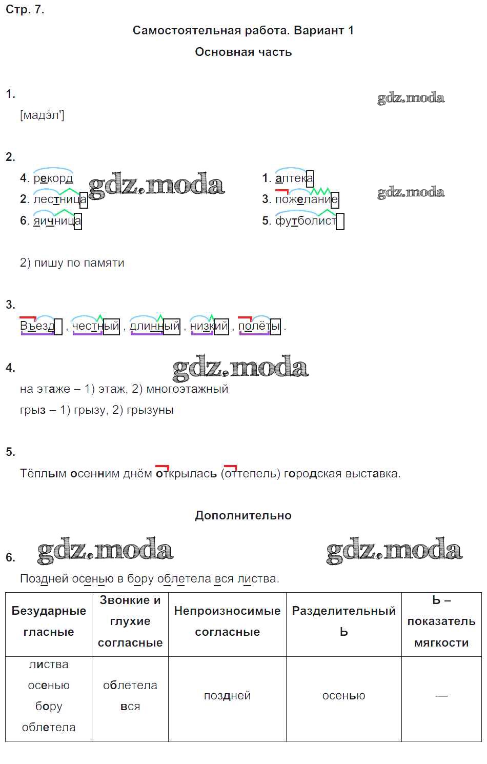 ГДЗ решение к заданию № 7 Русский язык 4 класс Тесты и самостоятельные работы для текущего контроля Калинина О.Б. (к уч. Желтовской) Дрофа 2017 ФГОС бесплатно на гдз.мода!
