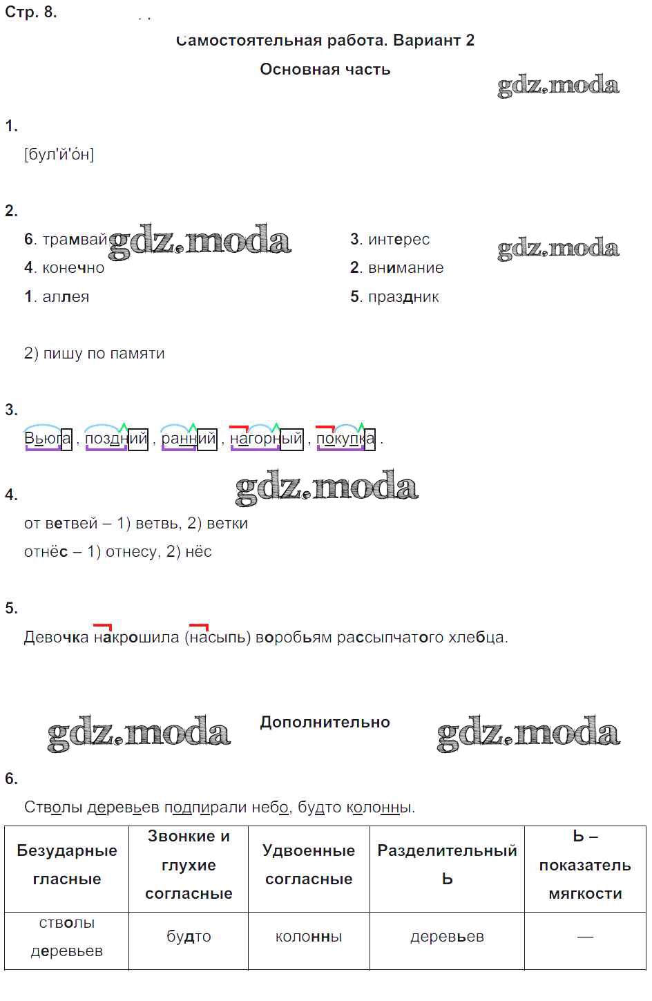 ГДЗ решение к заданию № 8 Русский язык 4 класс Тесты и самостоятельные работы для текущего контроля Калинина О.Б. (к уч. Желтовской) Дрофа 2017 ФГОС бесплатно на гдз.мода!