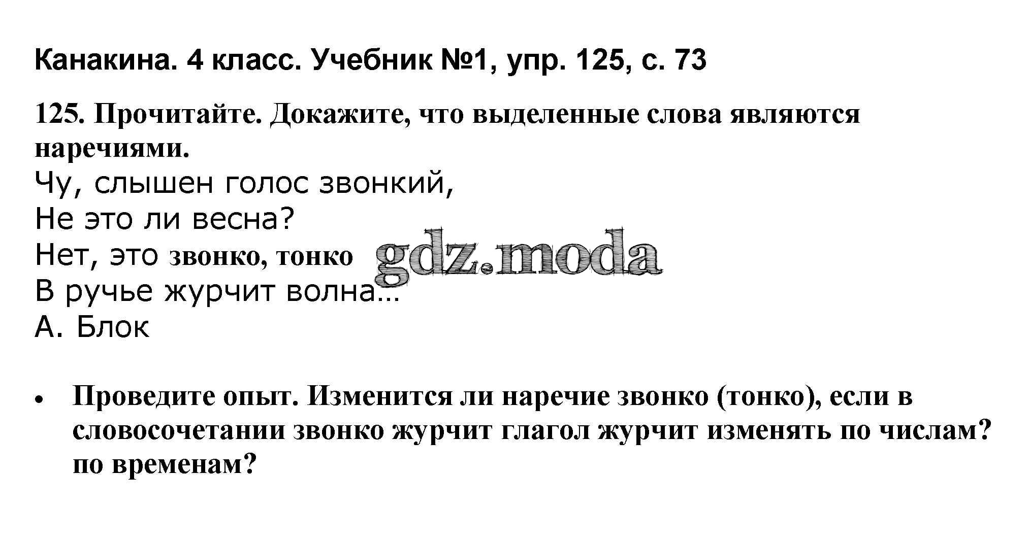ОТВЕТ на задание № 125 Учебник по Русскому языку 4 класс Канакина Школа России