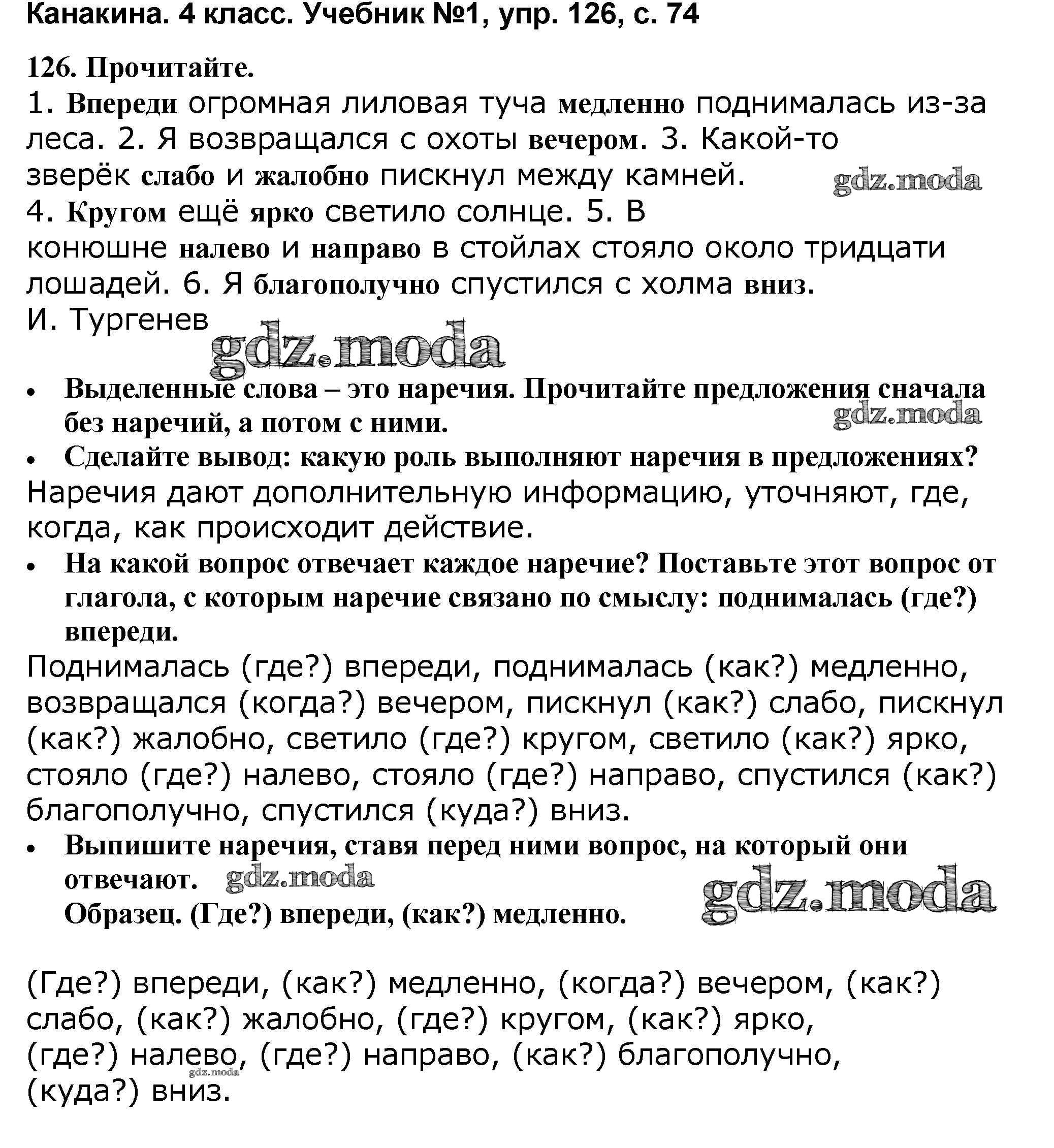 ОТВЕТ на задание № 126 Учебник по Русскому языку 4 класс Канакина Школа России