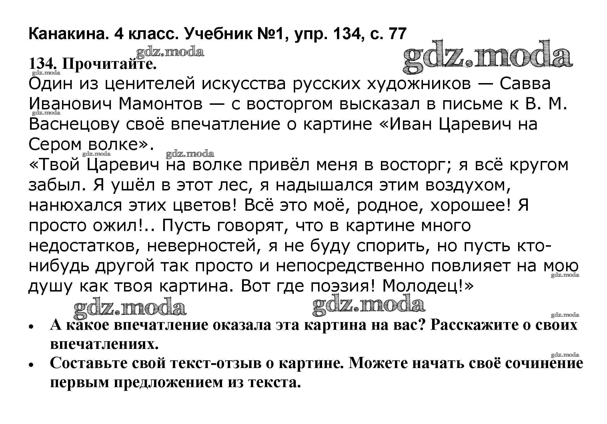 ОТВЕТ на задание № 134 Учебник по Русскому языку 4 класс Канакина Школа России