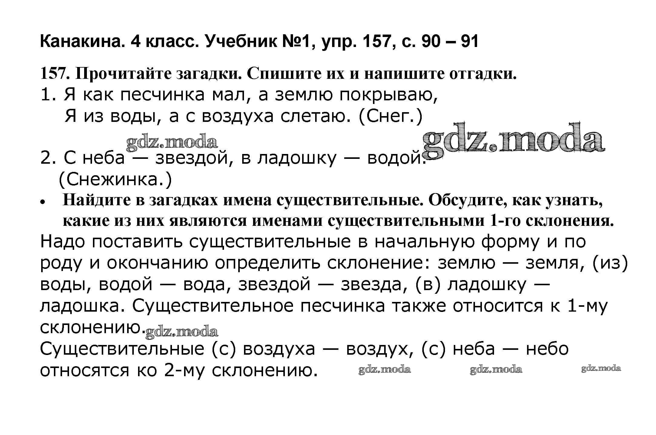 ОТВЕТ на задание № 157 Учебник по Русскому языку 4 класс Канакина Школа России