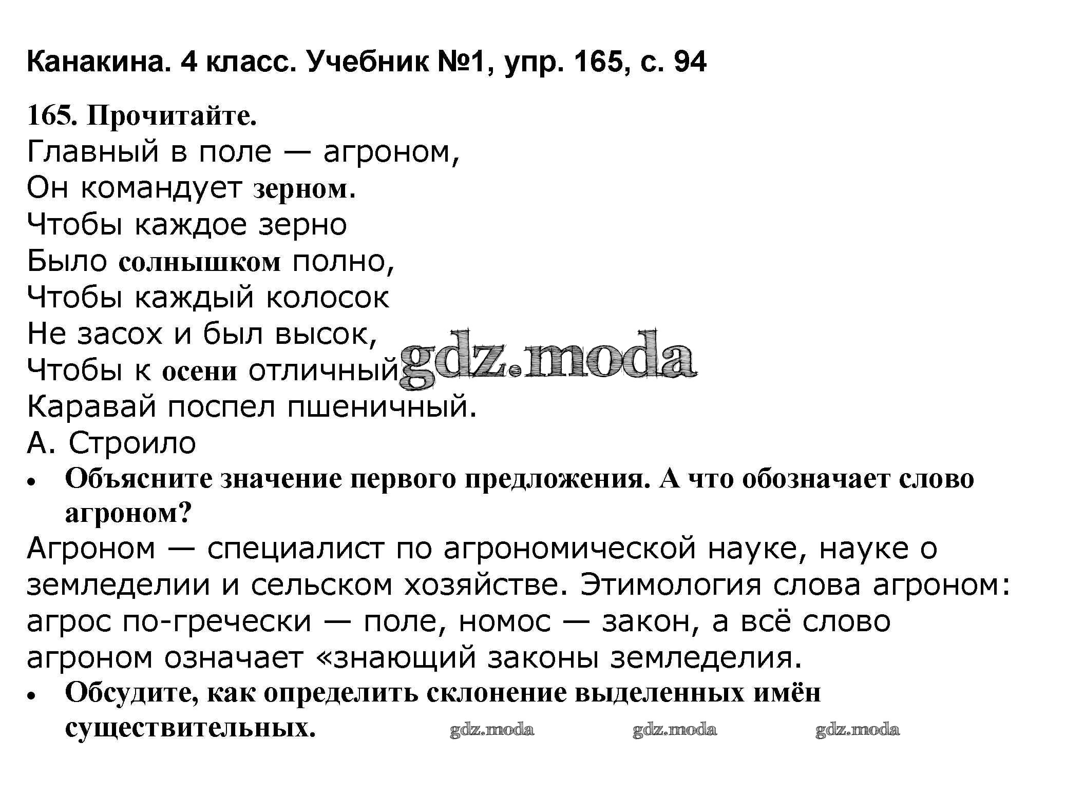 ОТВЕТ на задание № 165 Учебник по Русскому языку 4 класс Канакина Школа России