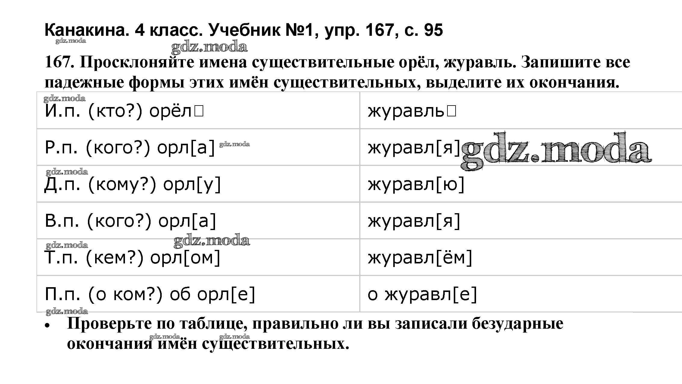 ОТВЕТ на задание № 167 Учебник по Русскому языку 4 класс Канакина Школа России