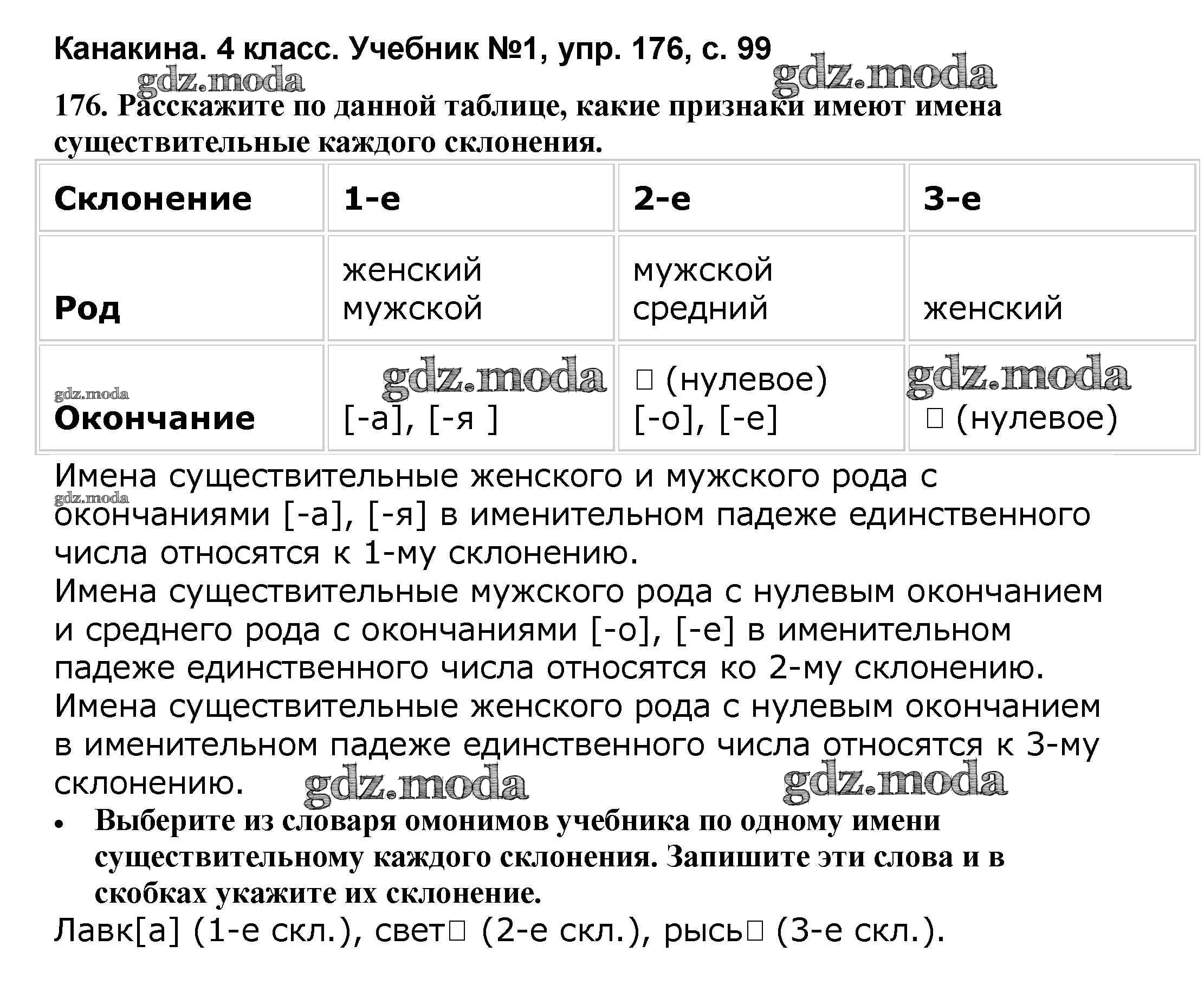 ОТВЕТ на задание № 176 Учебник по Русскому языку 4 класс Канакина Школа России