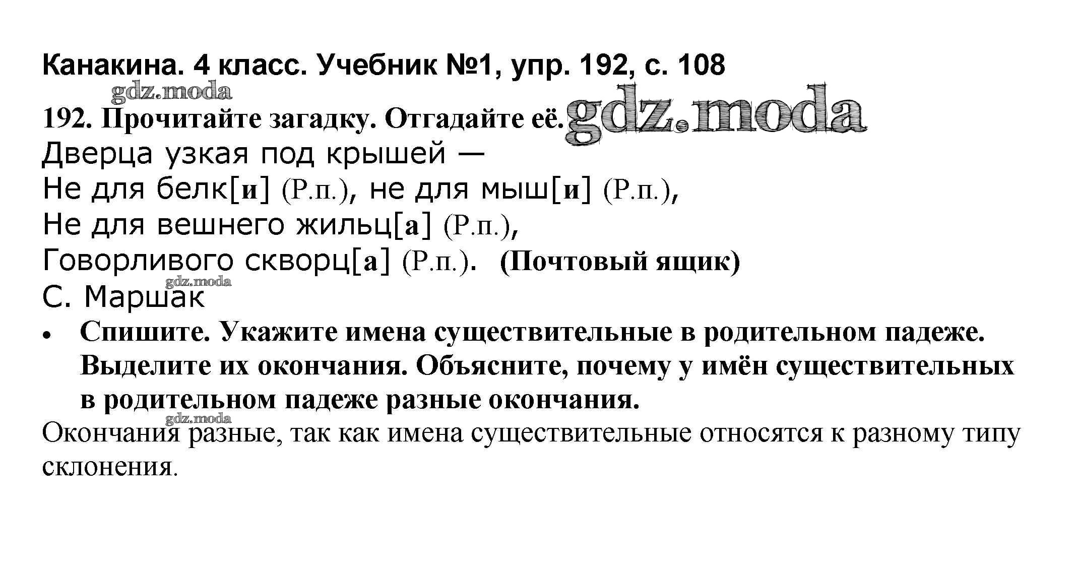 ОТВЕТ на задание № 192 Учебник по Русскому языку 4 класс Канакина Школа России
