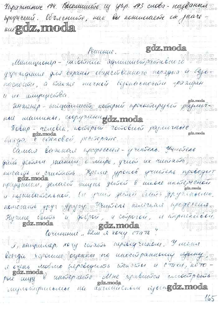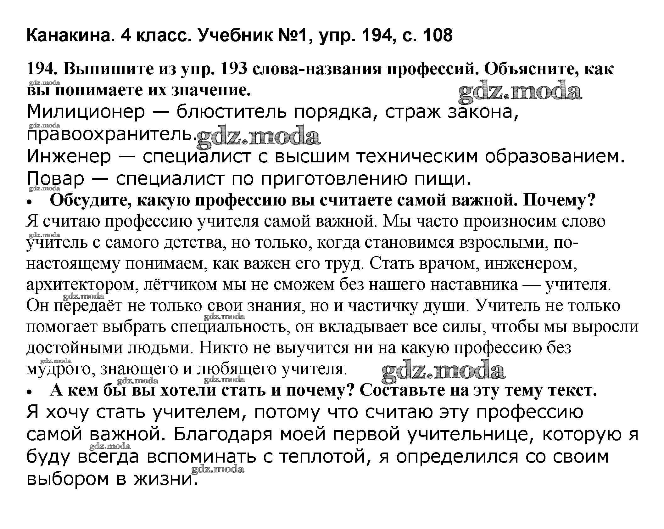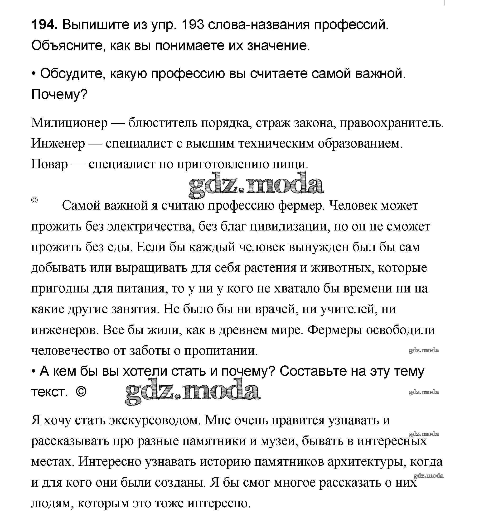 ОТВЕТ на задание № 194 Учебник по Русскому языку 4 класс Канакина Школа России