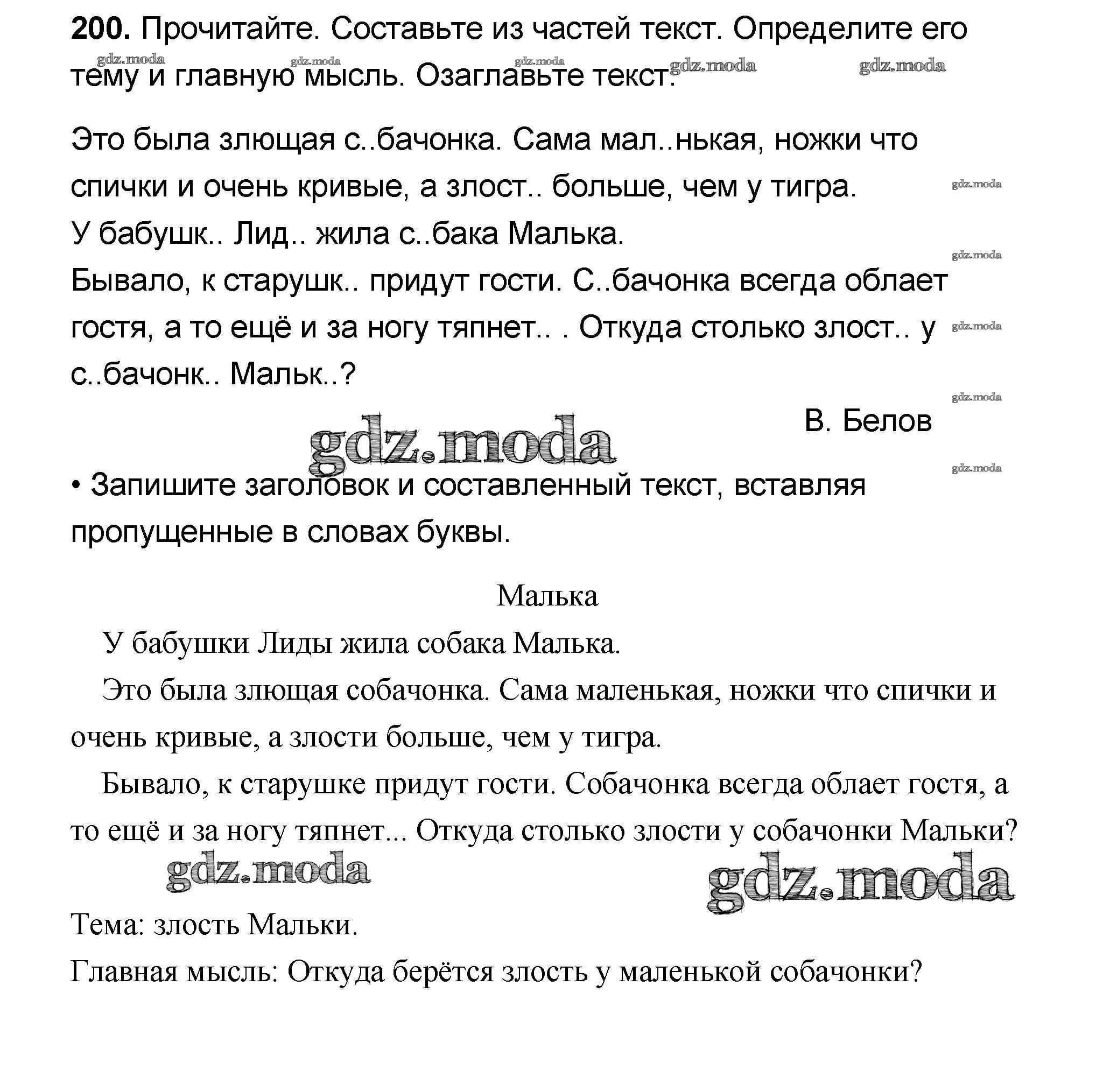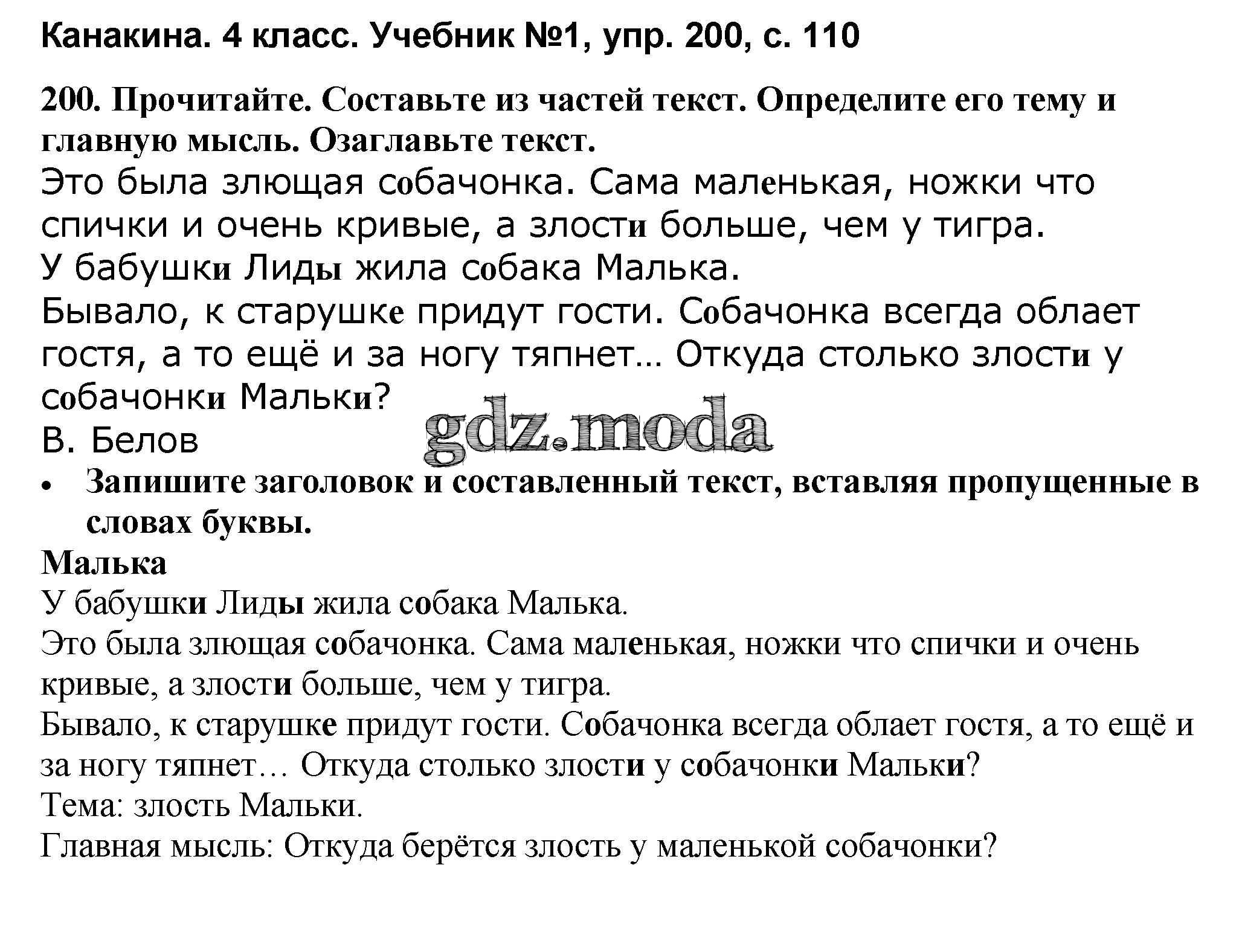 ОТВЕТ на задание № 200 Учебник по Русскому языку 4 класс Канакина Школа России
