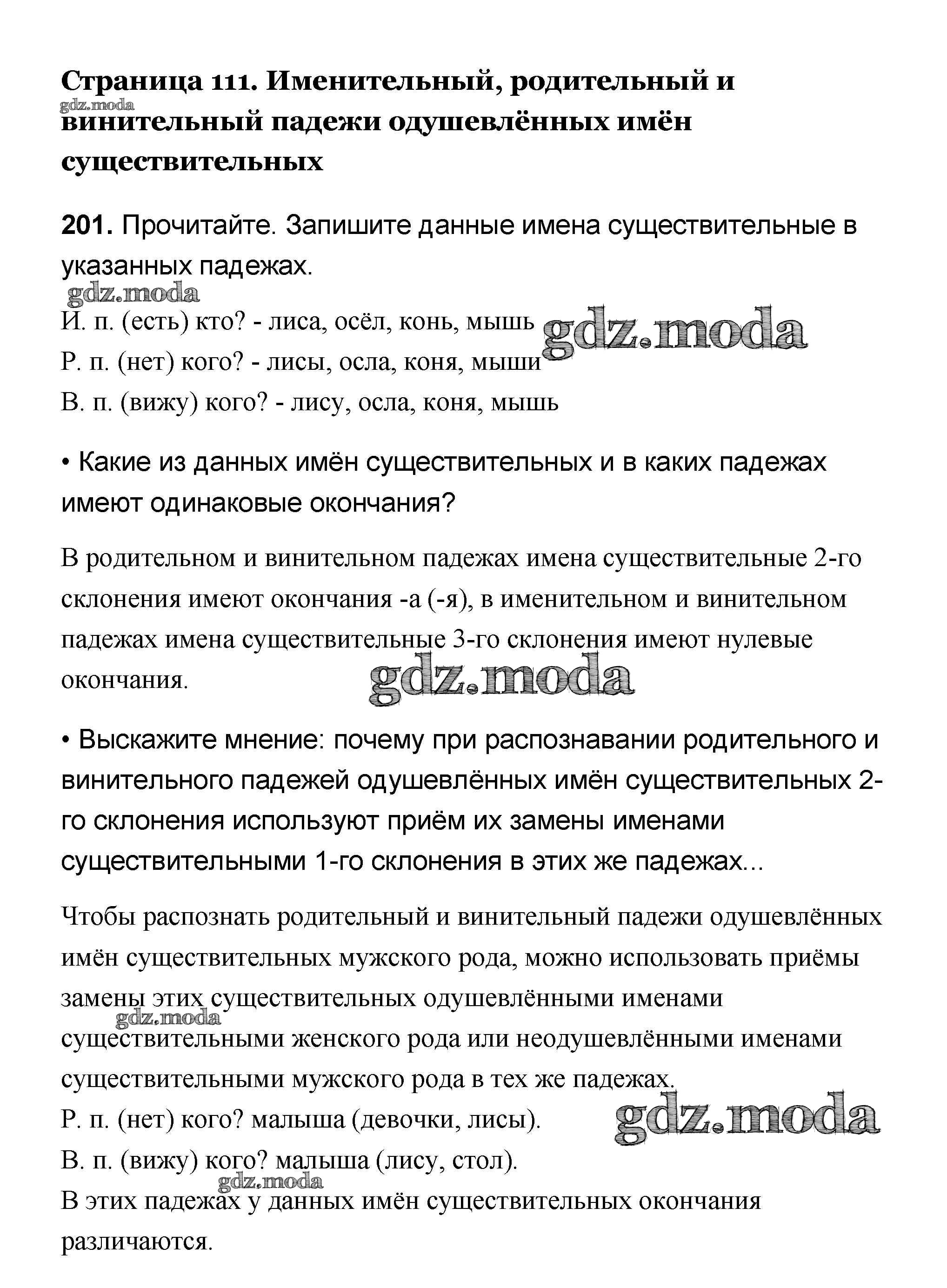 ОТВЕТ на задание № 201 Учебник по Русскому языку 4 класс Канакина Школа России