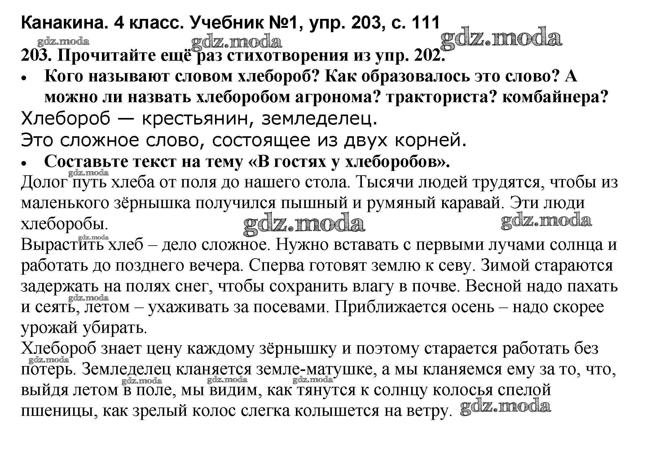 ОТВЕТ на задание № 203 Учебник по Русскому языку 4 класс Канакина Школа России