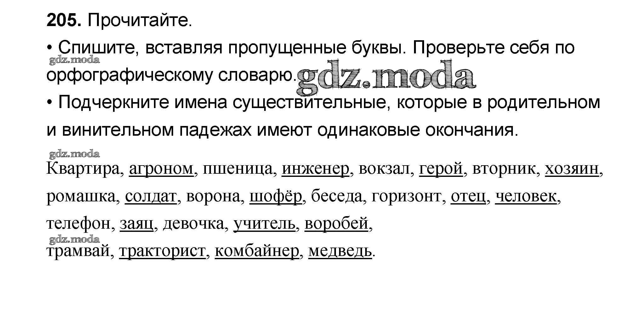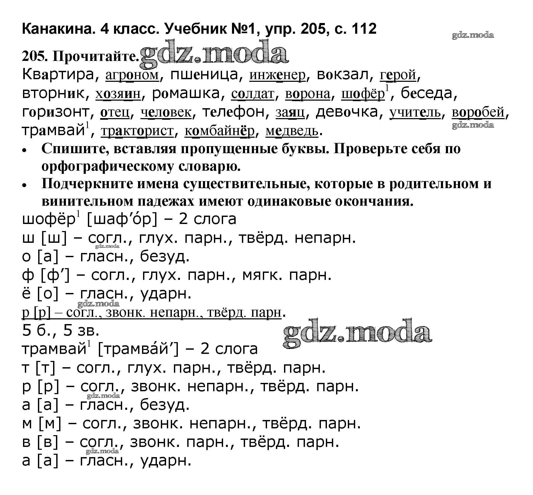 ОТВЕТ на задание № 205 Учебник по Русскому языку 4 класс Канакина Школа России