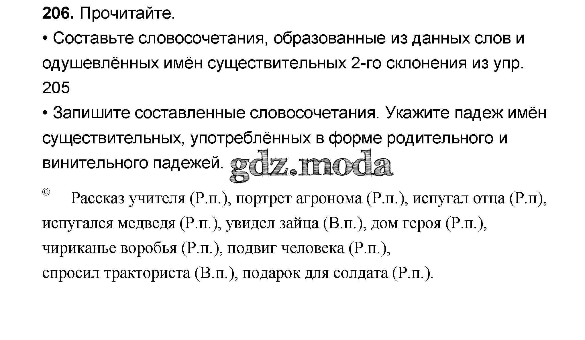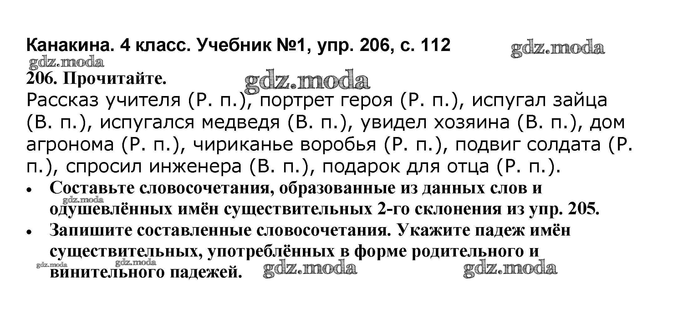 ОТВЕТ на задание № 206 Учебник по Русскому языку 4 класс Канакина Школа России