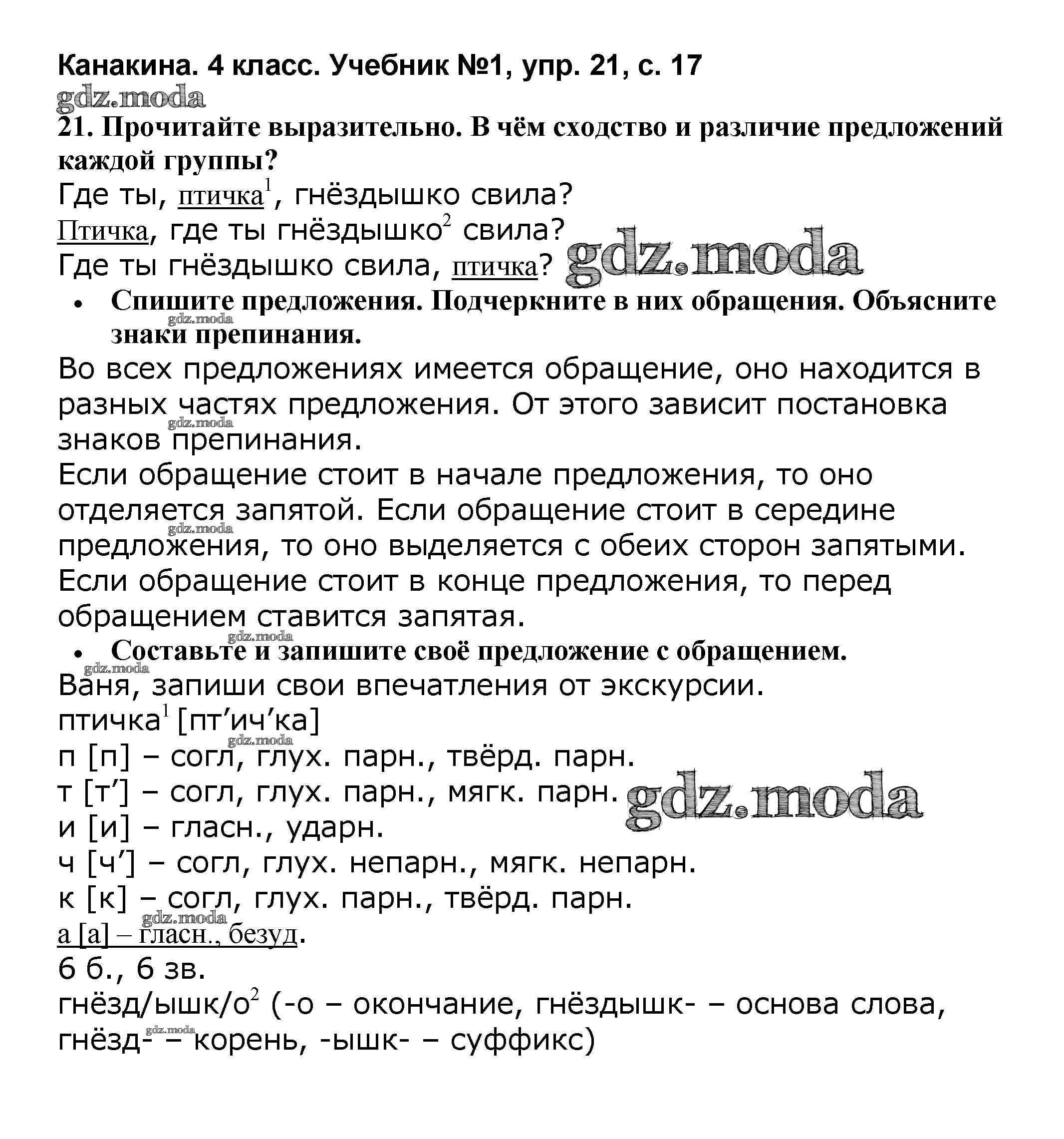 ОТВЕТ на задание № 21 Учебник по Русскому языку 4 класс Канакина Школа России
