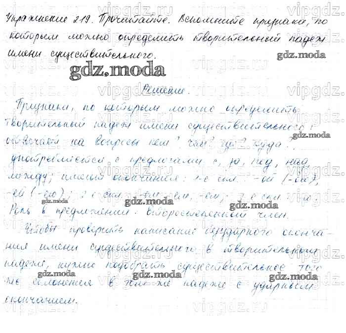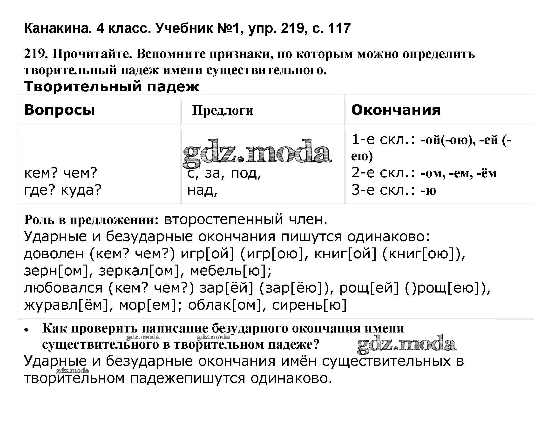ОТВЕТ на задание № 219 Учебник по Русскому языку 4 класс Канакина Школа России