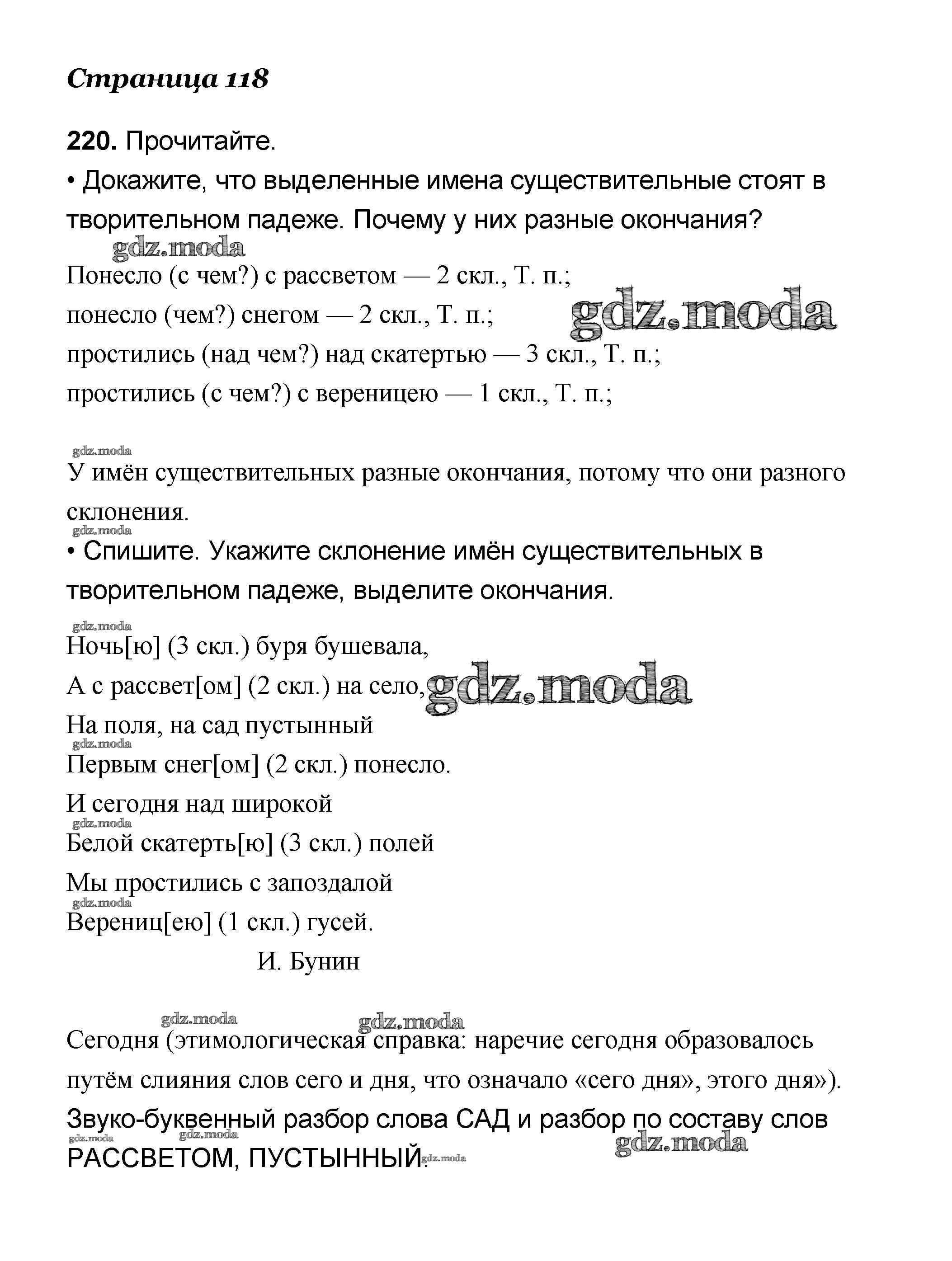 ОТВЕТ на задание № 220 Учебник по Русскому языку 4 класс Канакина Школа России