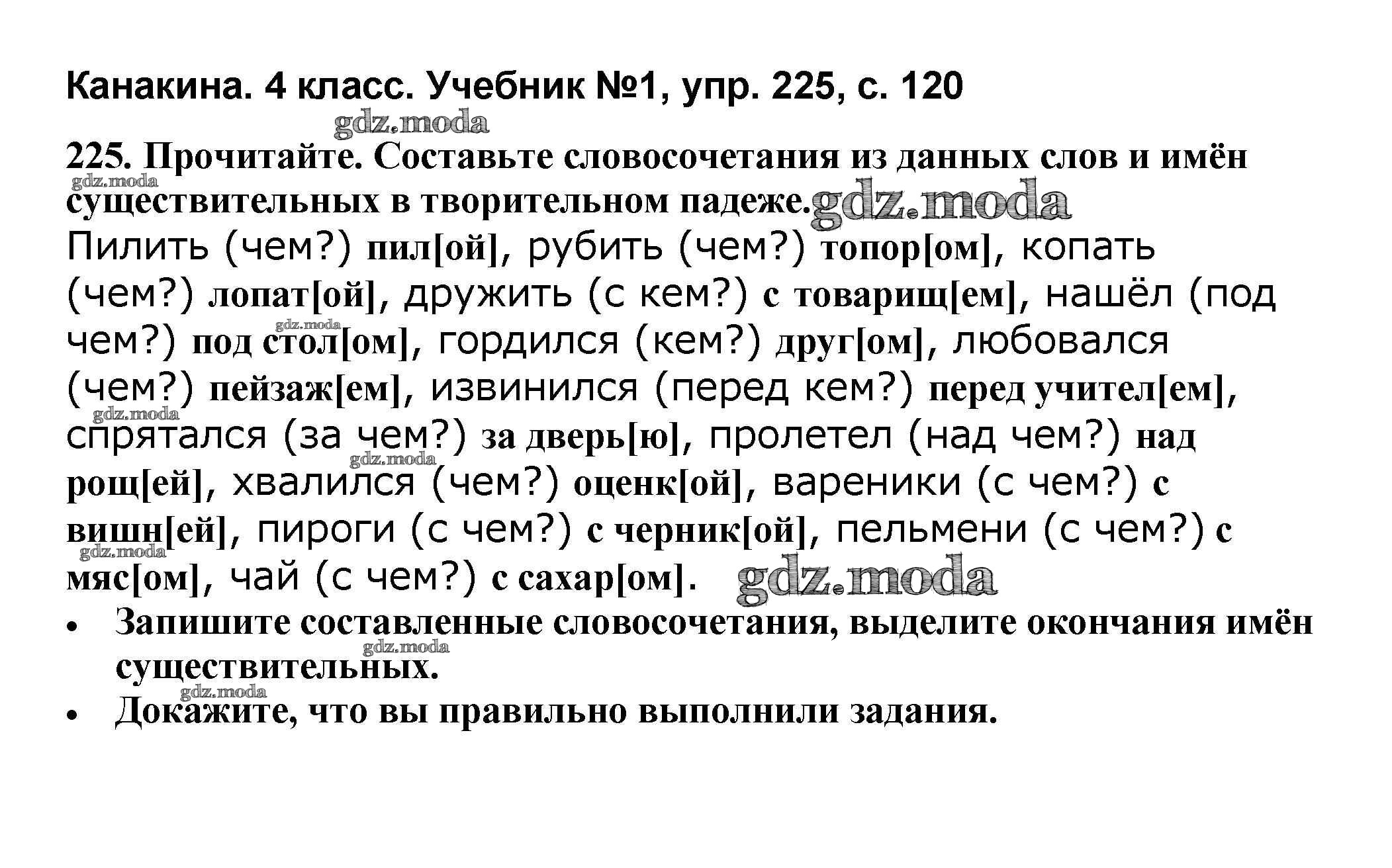ОТВЕТ на задание № 225 Учебник по Русскому языку 4 класс Канакина Школа России