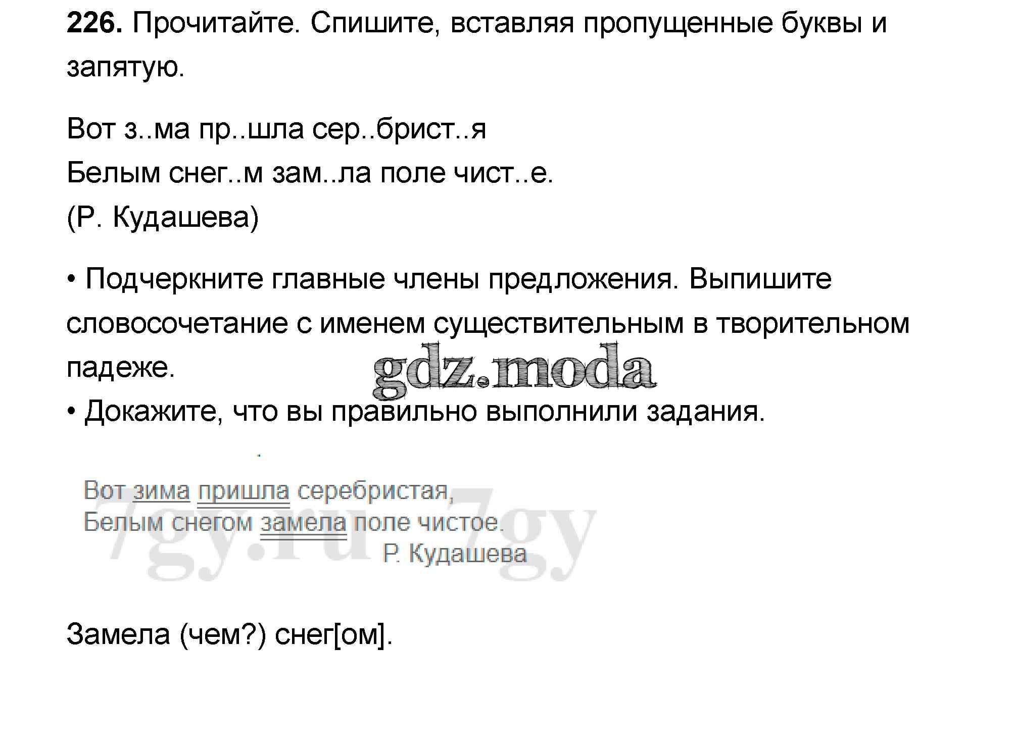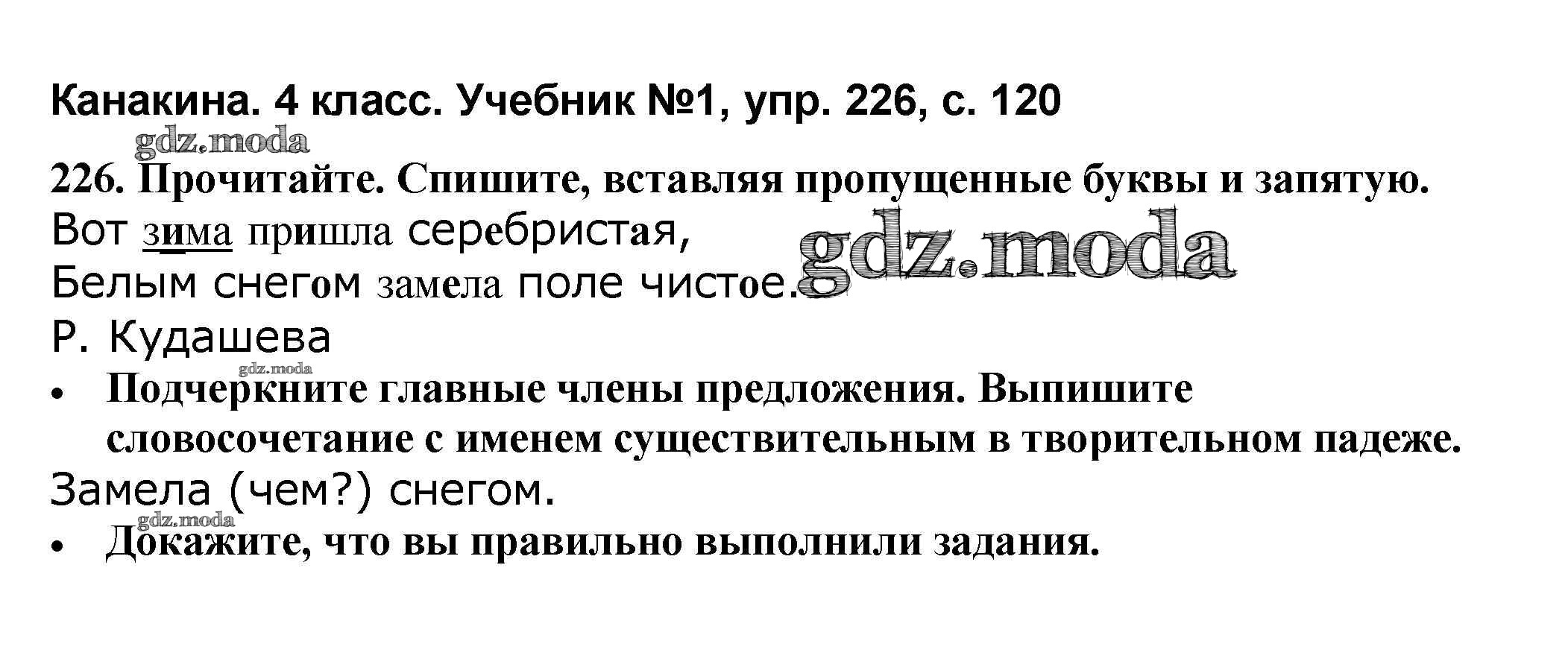 ОТВЕТ на задание № 226 Учебник по Русскому языку 4 класс Канакина Школа России