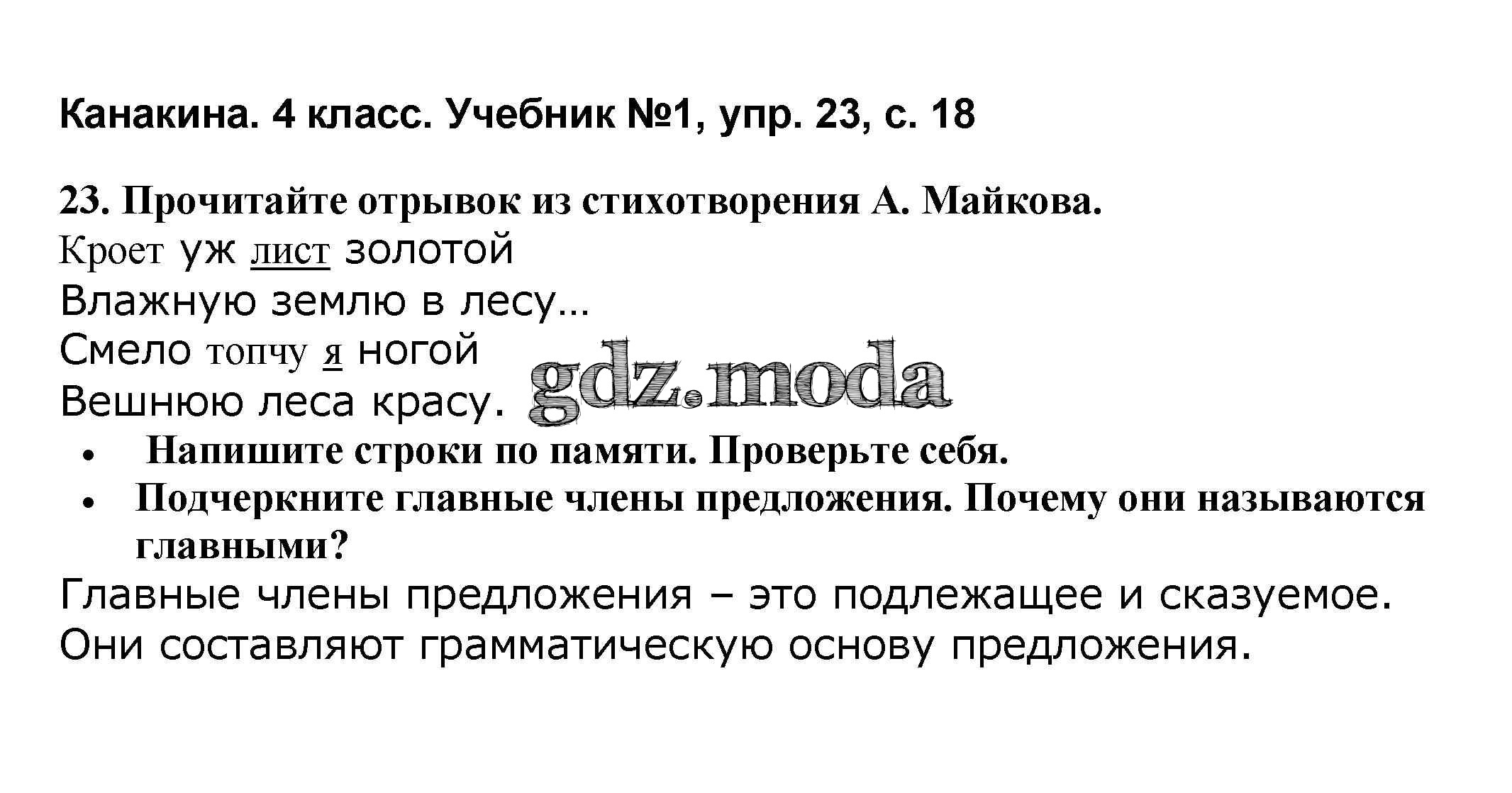 ОТВЕТ на задание № 23 Учебник по Русскому языку 4 класс Канакина Школа России