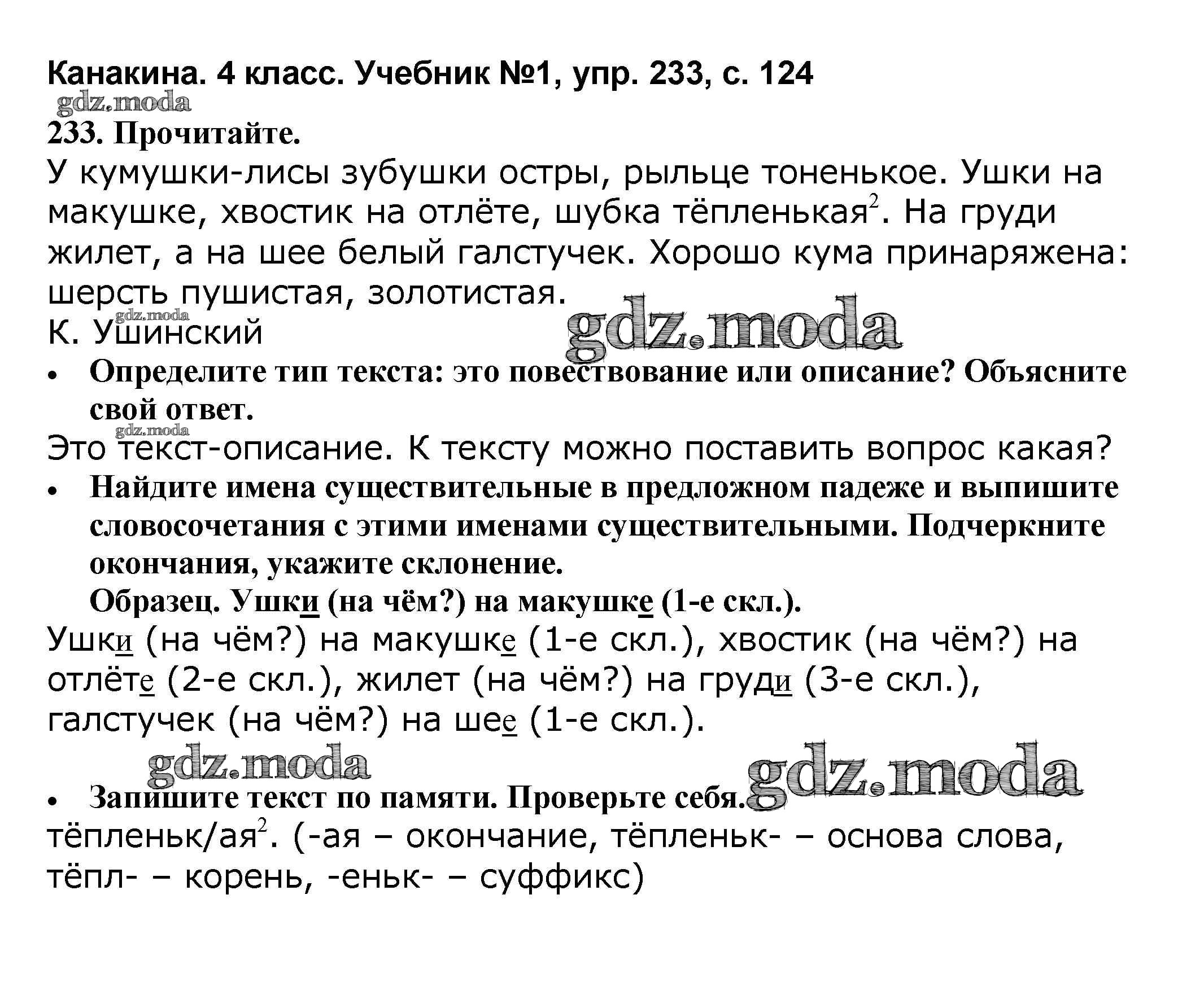 ОТВЕТ на задание № 233 Учебник по Русскому языку 4 класс Канакина Школа России